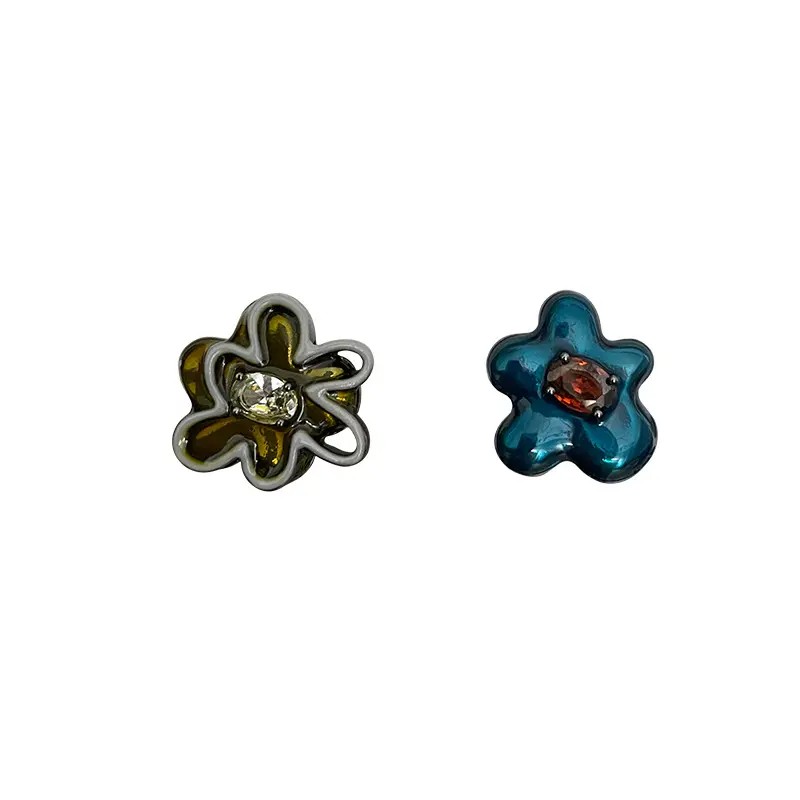 森系不对称金属撞色花朵耳钉女小众独特个性精致通勤百搭耳环耳饰