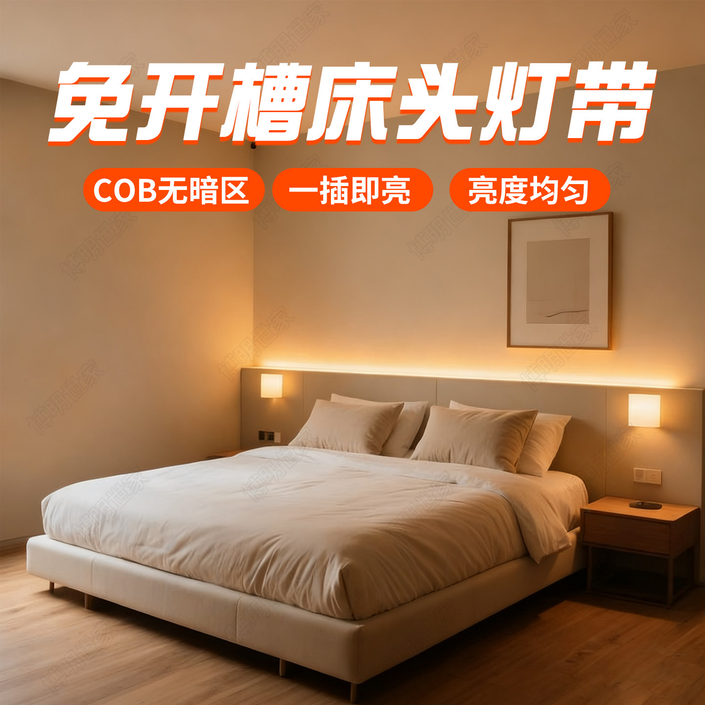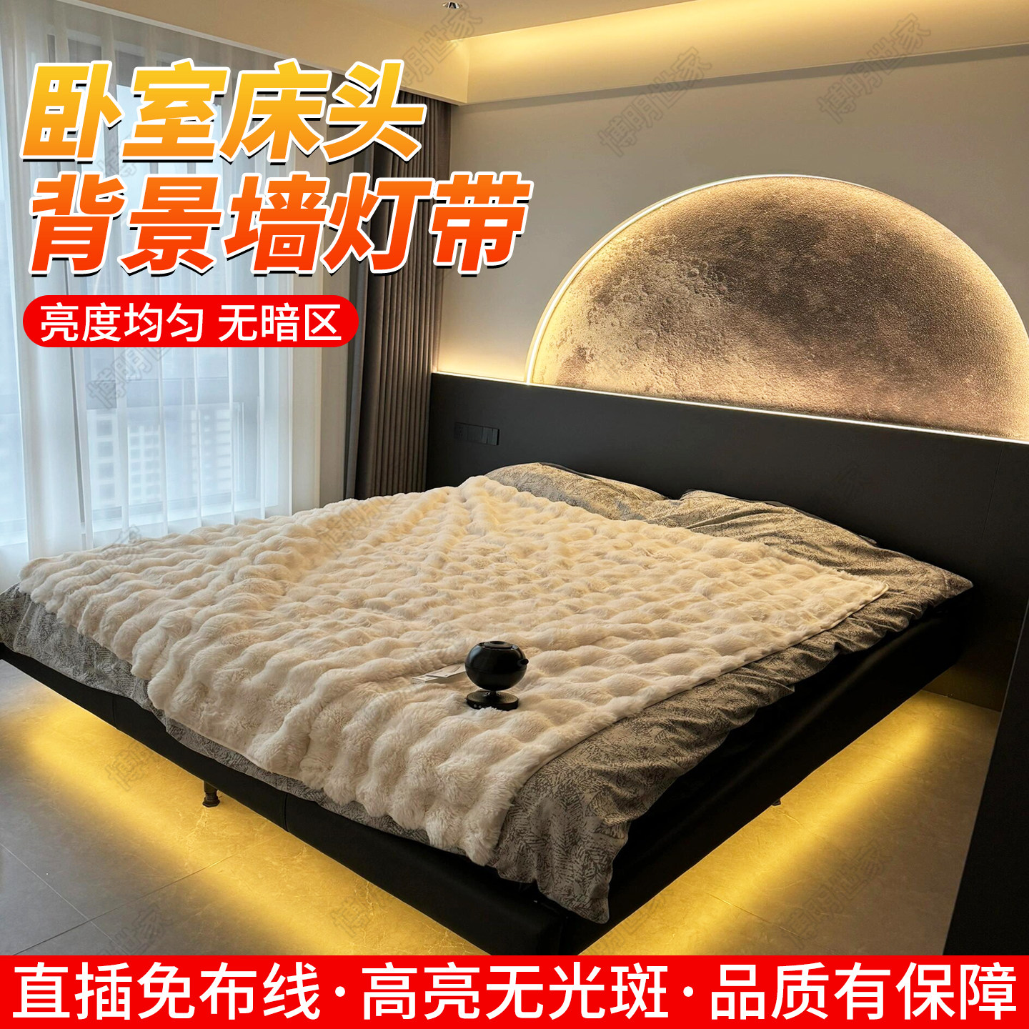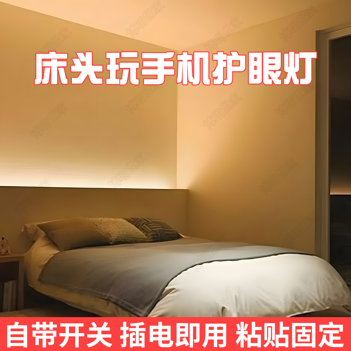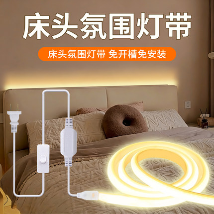 床头灯带开关220v家用卧室宿舍背景自粘氛围灯床底床边插电小夜灯