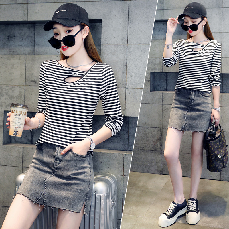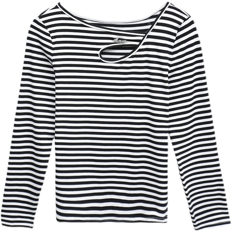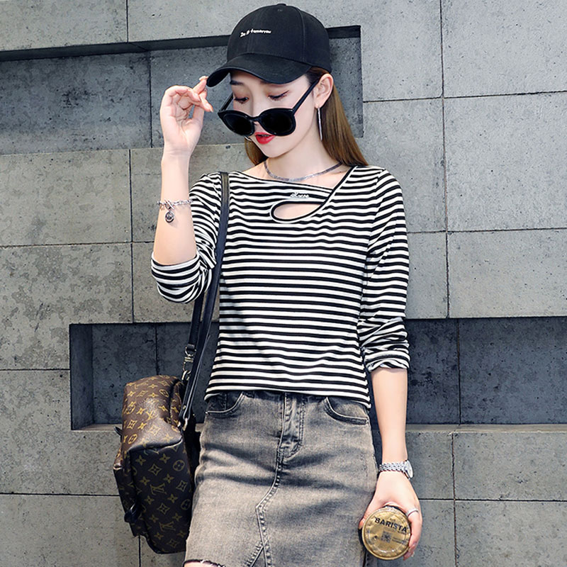 长袖T恤春秋外穿条纹打底衫女2023新款设计感小众百搭春装上衣潮
