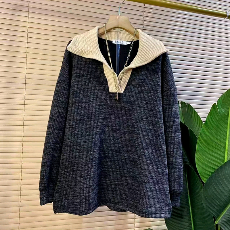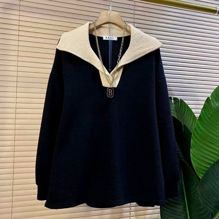 秋新款欧货时尚翻领撞色简约宽松遮肉女人衫大码女装胖mm休闲上衣