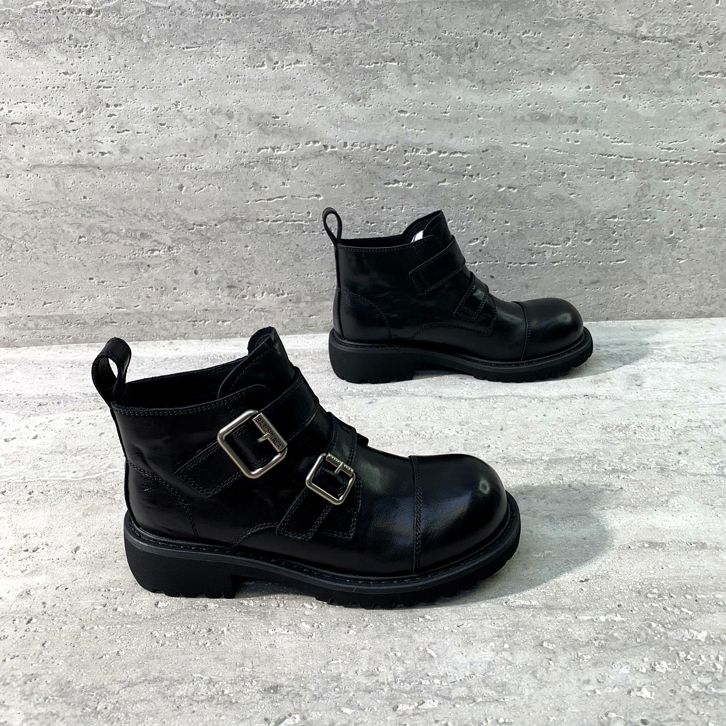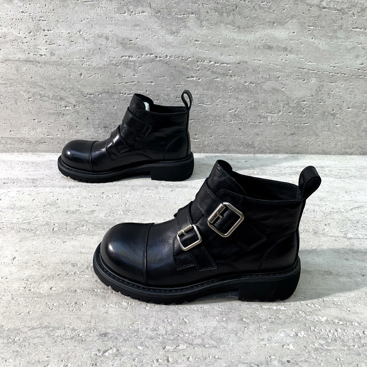 欧洲站女鞋2025秋季新款欧货真皮厚跟英伦风皮带扣时尚短靴马丁靴
