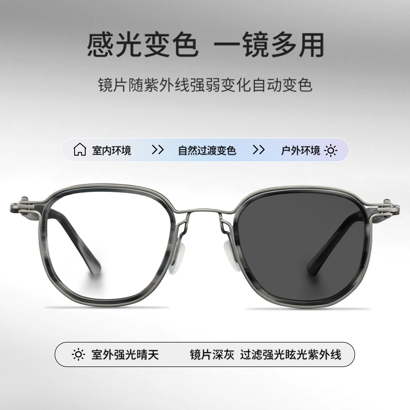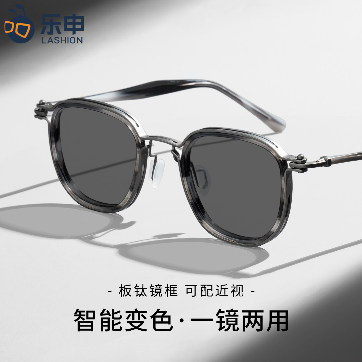 乐申纯钛小众复古偏光墨镜男款驾驶开车专用感光变色近视太阳眼镜