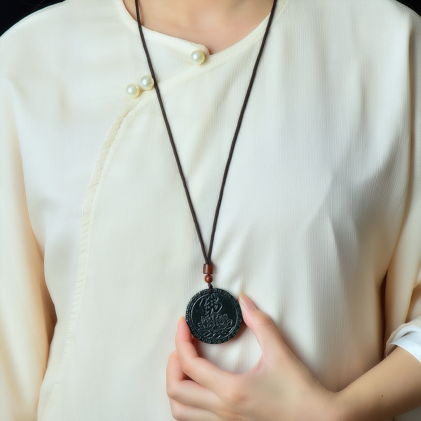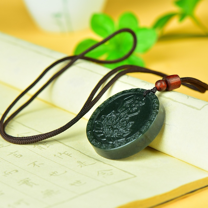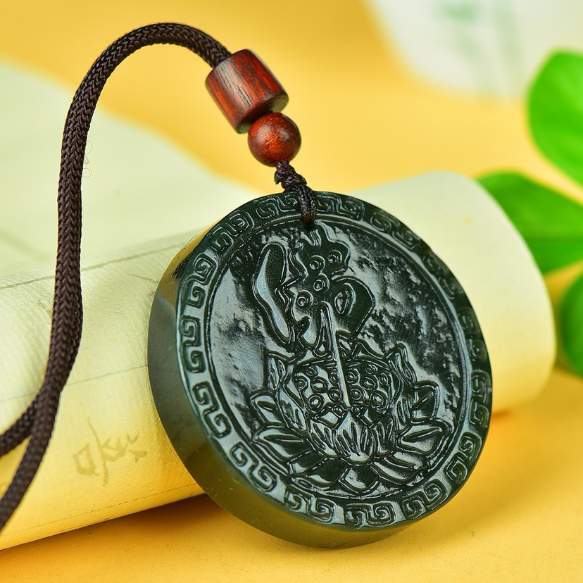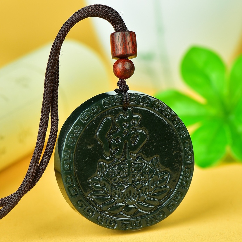 保真天然和田玉青玉莲花佛牌圆形吊坠挂件男女款玉石项链锁骨链