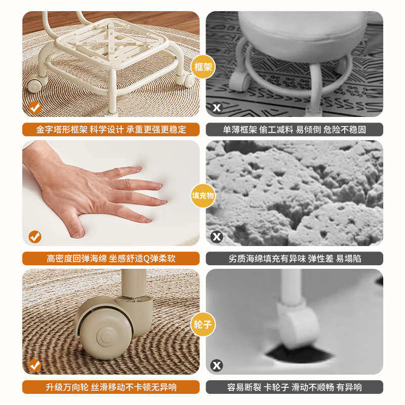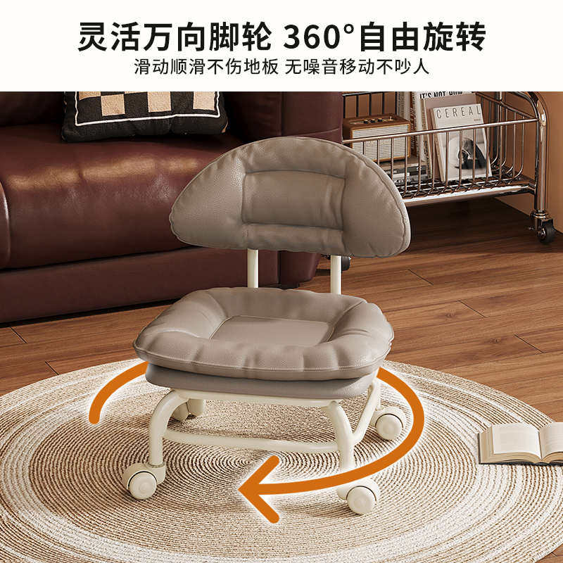 靠背矮凳美缝带娃神器儿童学步圆凳家用移动万向轮懒人擦地小凳子