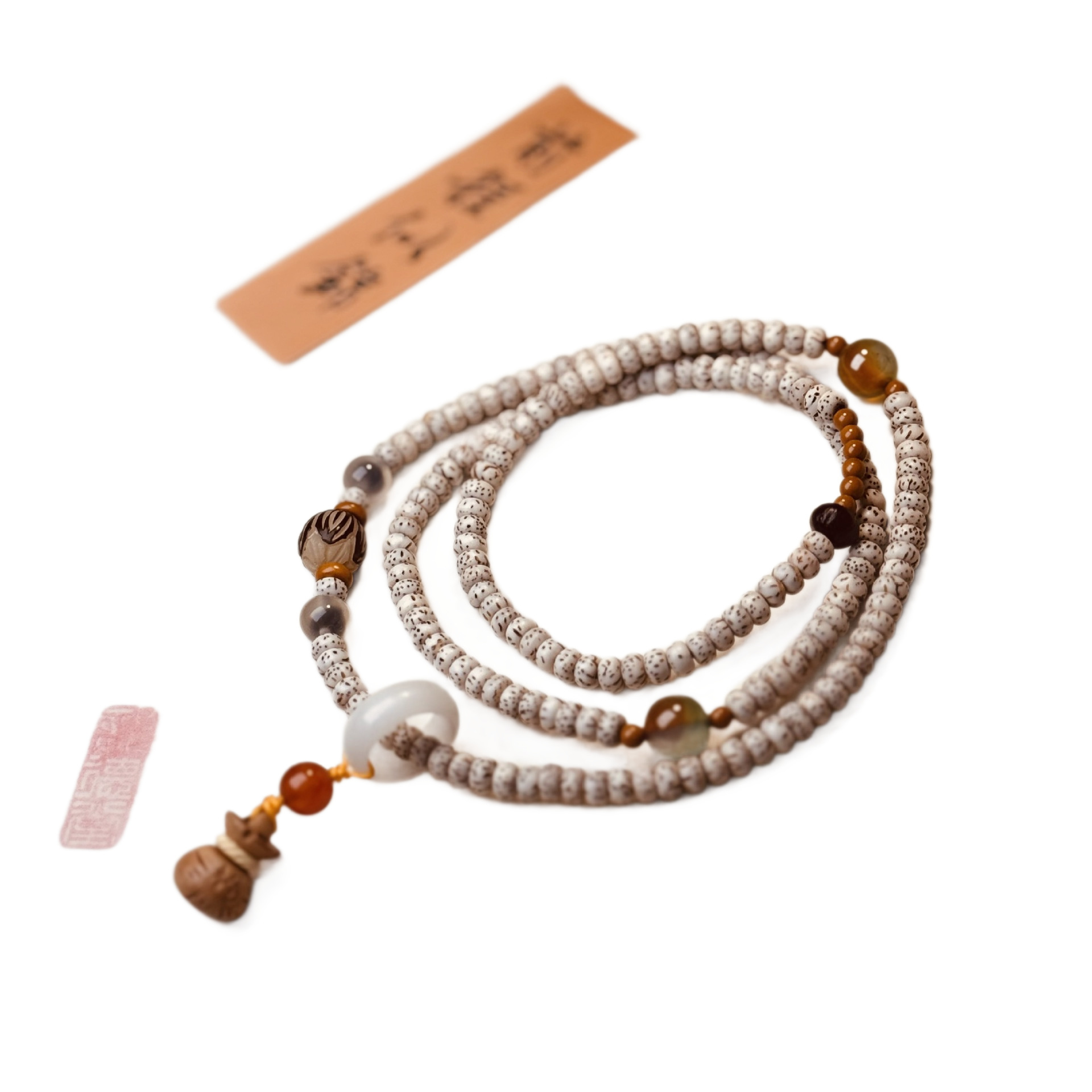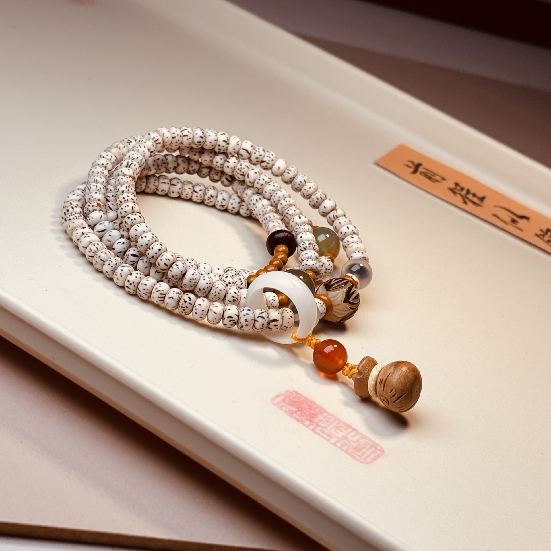 星月菩提手串108颗白玉圆珠新中式佛珠男女款手链挂脖饰品
