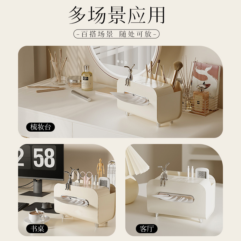 多功能纸巾盒家用床头柜收纳卧室客厅茶几桌面遥控器收纳盒抽纸盒