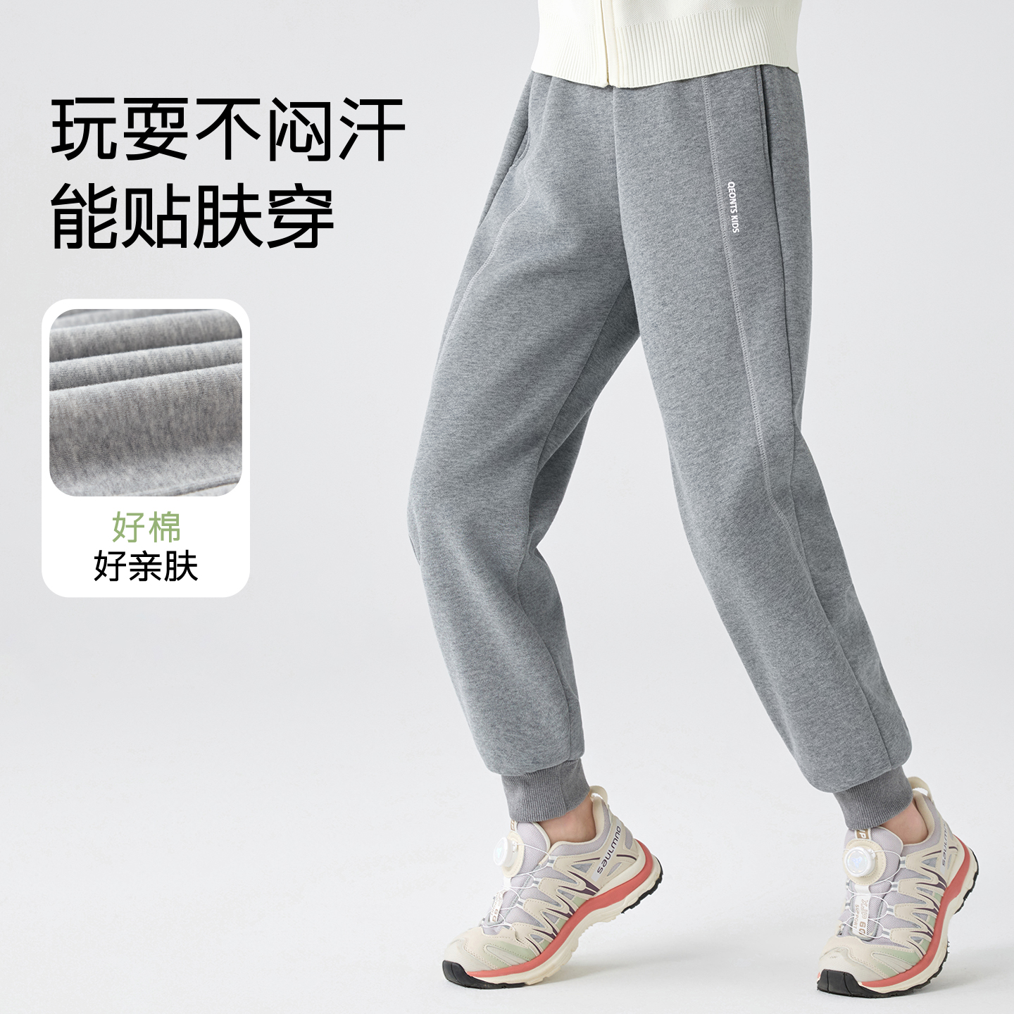 儿童秋冬款灰色校服裤加绒卫裤