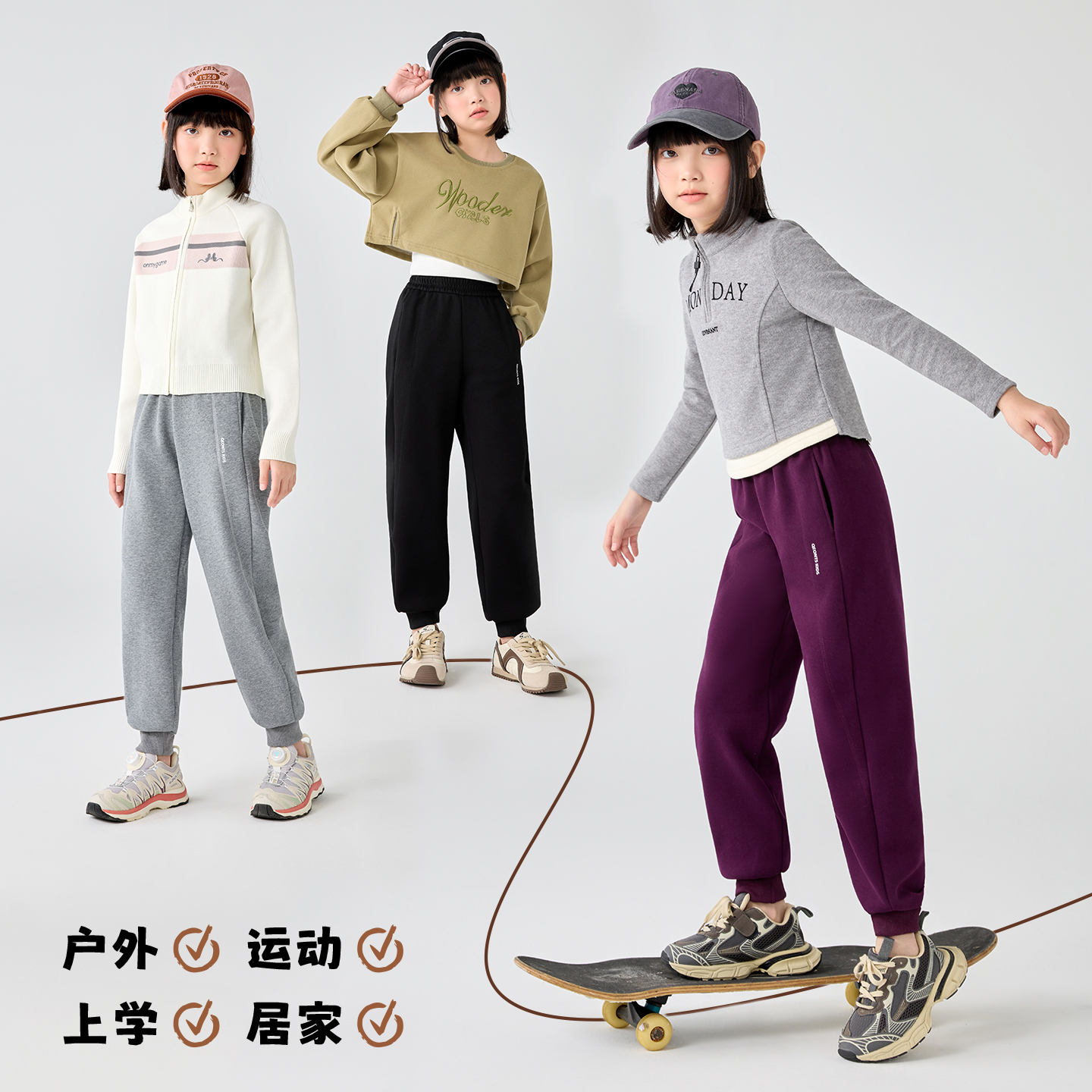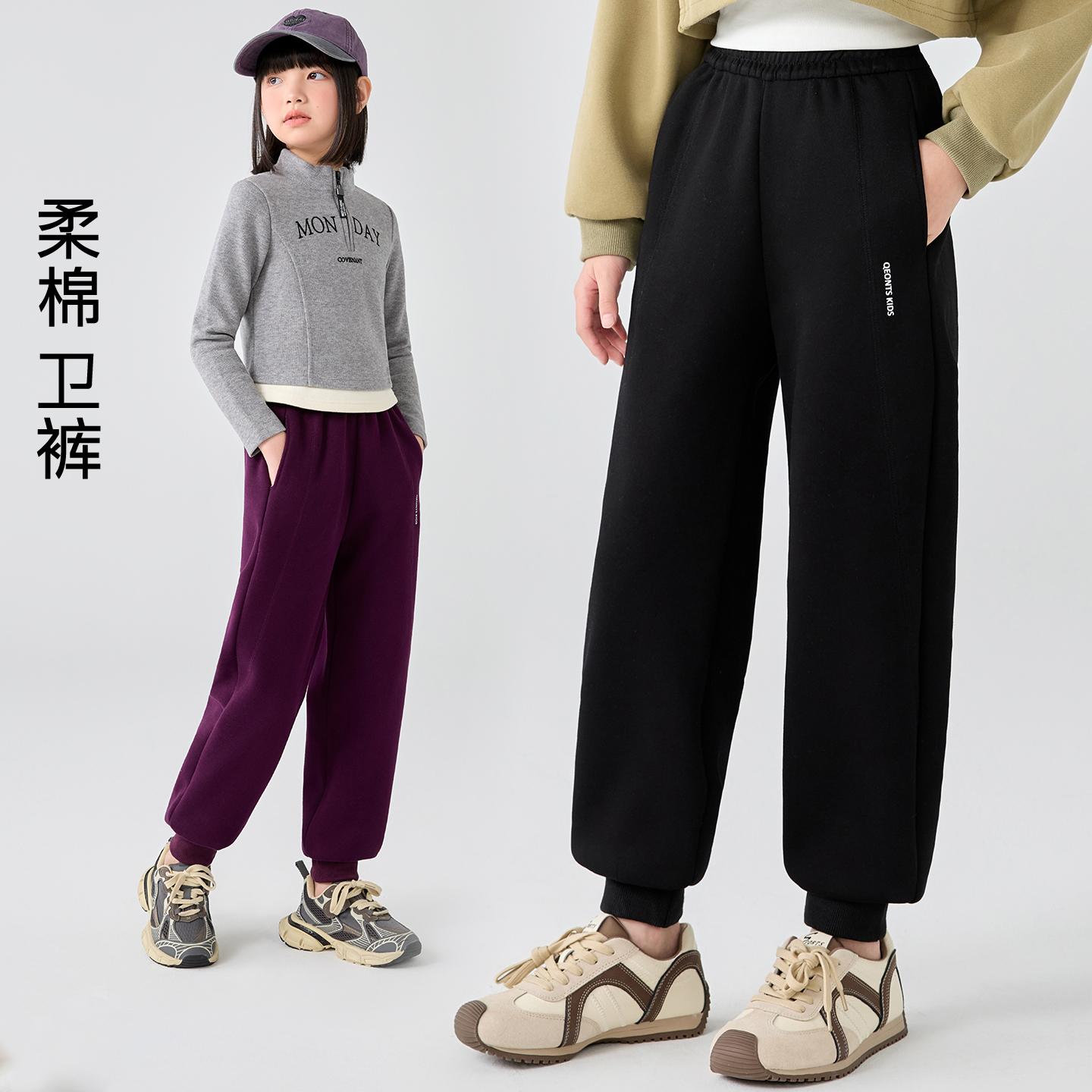 儿童裤子女童男童运动裤秋冬款灰色校服裤长裤校园裤防风加绒卫裤