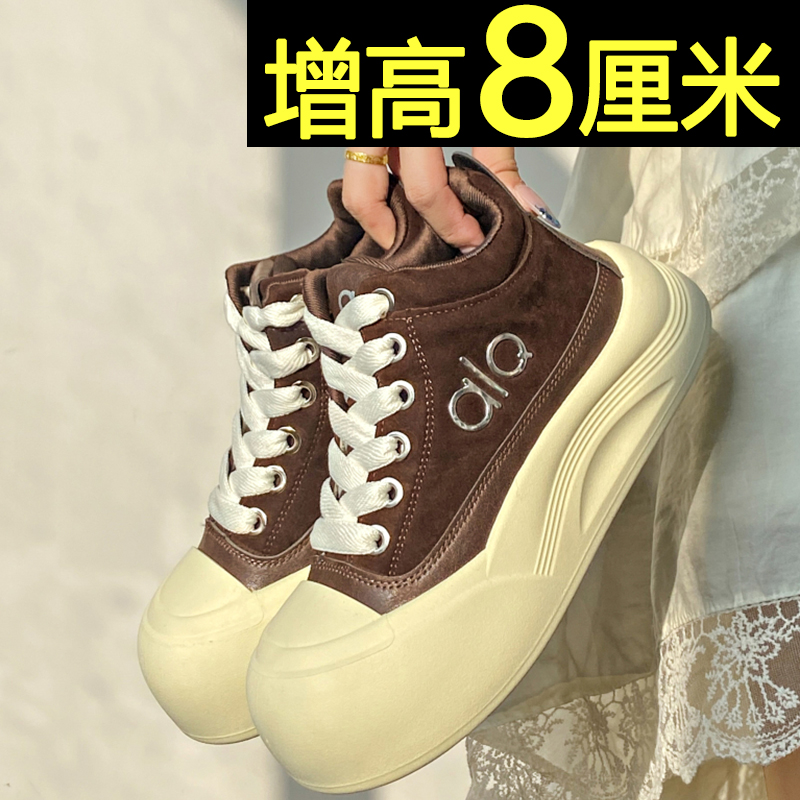 高帮鞋女2025新款秋冬季厚底休闲运动板鞋轻便百搭加绒内增高女鞋