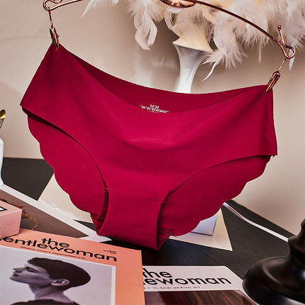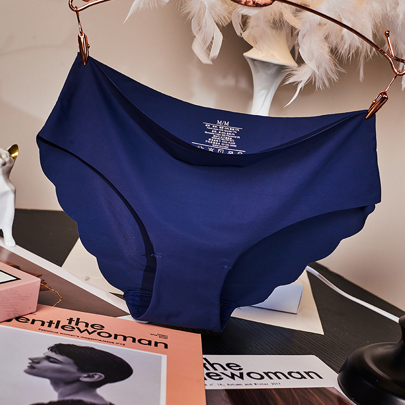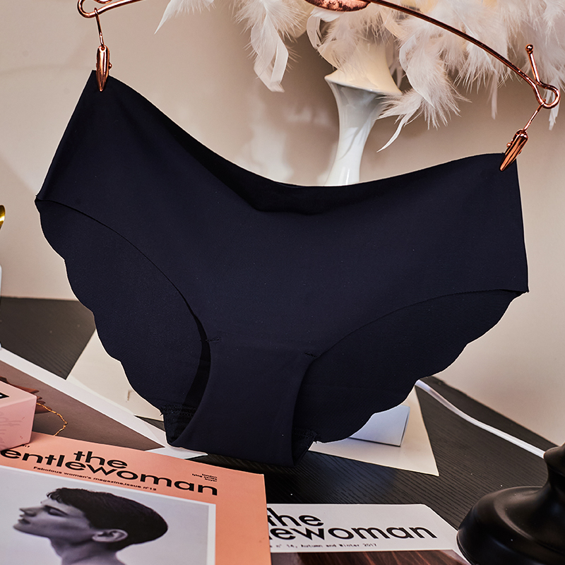 无痕内裤女中腰纯棉底裆波浪花边一片式纯色裤头弹力不勒三角裤