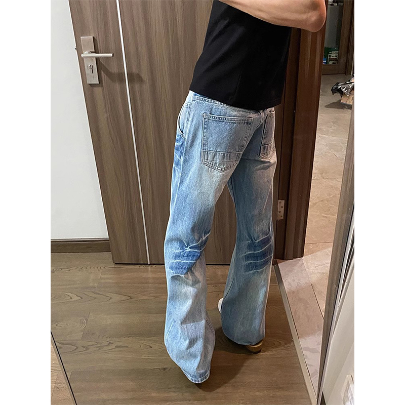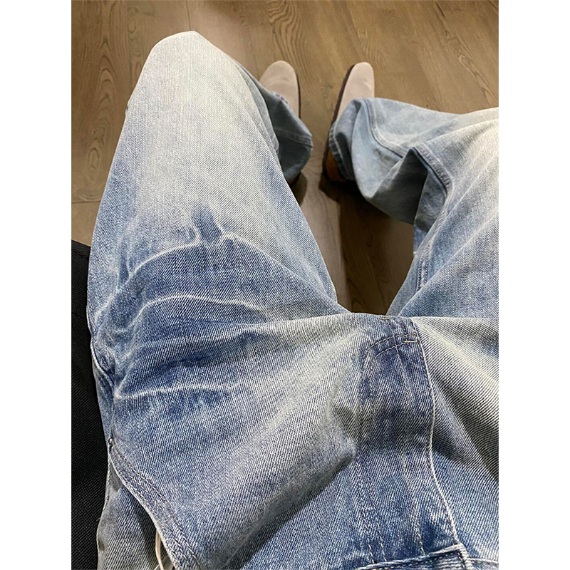 美式复古闪电牛仔裤男痞帅高街vibe裤子潮流修身显瘦微喇直筒长裤