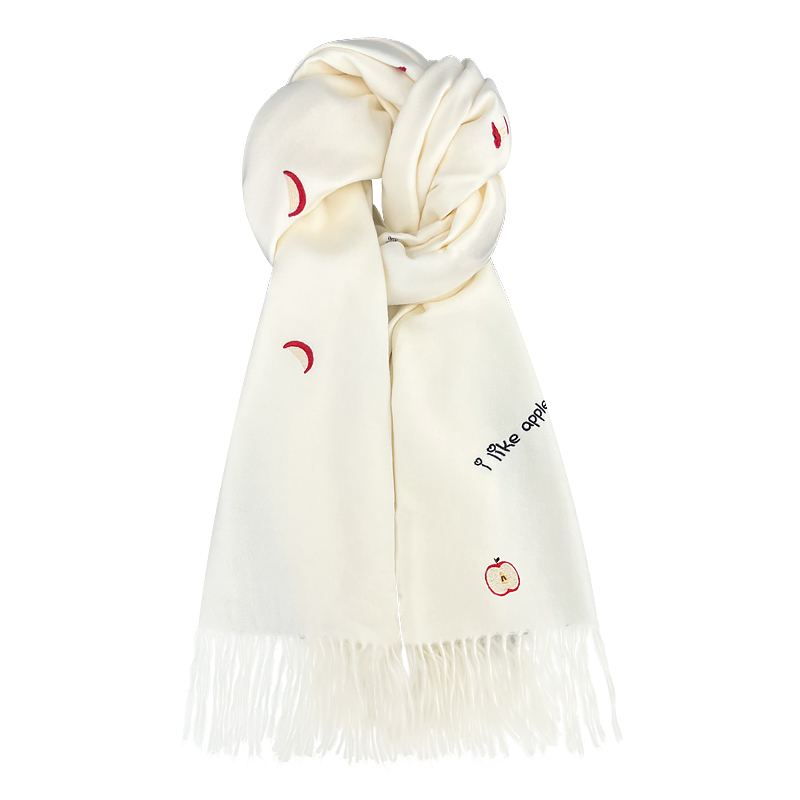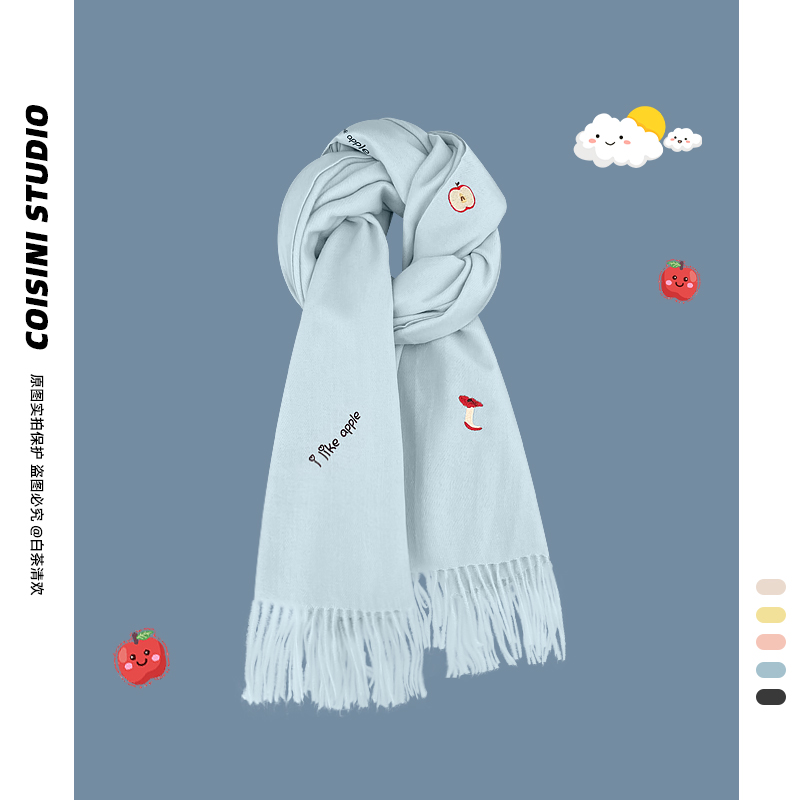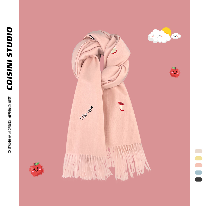 秋冬季高级氛围感苹果刺绣仿羊绒围巾女生保暖百搭披肩围脖两用潮