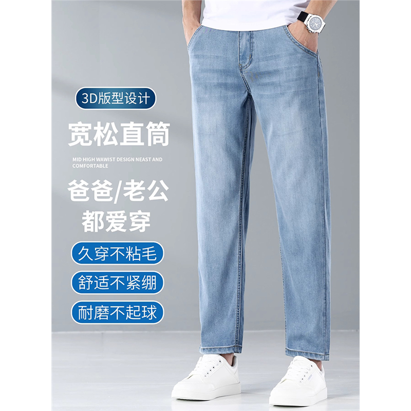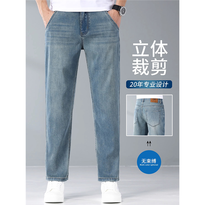 夏季凉感超薄九分天丝牛仔裤男士宽松复古直筒外穿潮流弹力9分裤