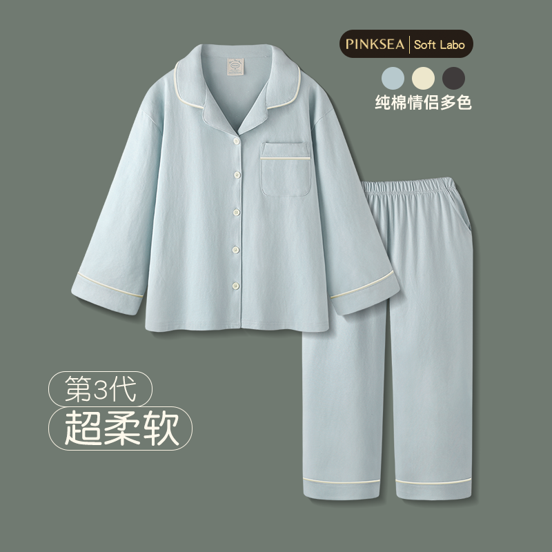 纯棉睡衣春秋新款纯色磨毛长袖情侣家居服可外穿大码男女士套装