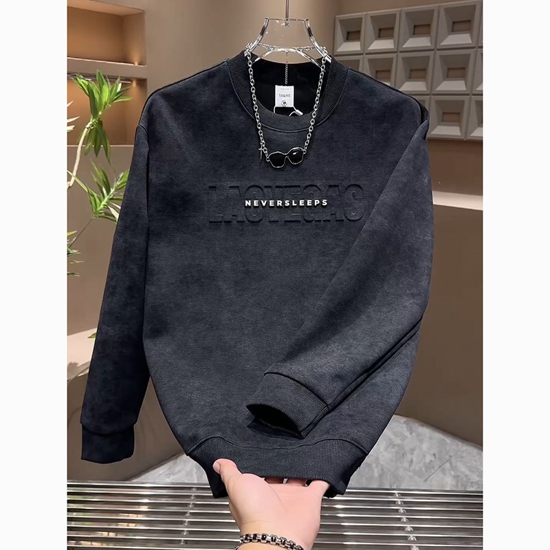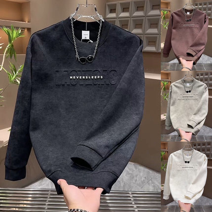 美式休闲男士潮流圆领打底衫2025秋冬字母印花轻奢T恤衫潮牌卫衣