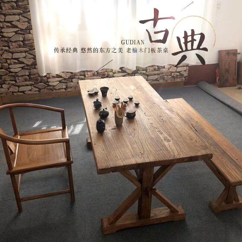 新款式老榆木风化桌椅仿古桌椅组合客厅住宅成套家具小厅茶桌书桌