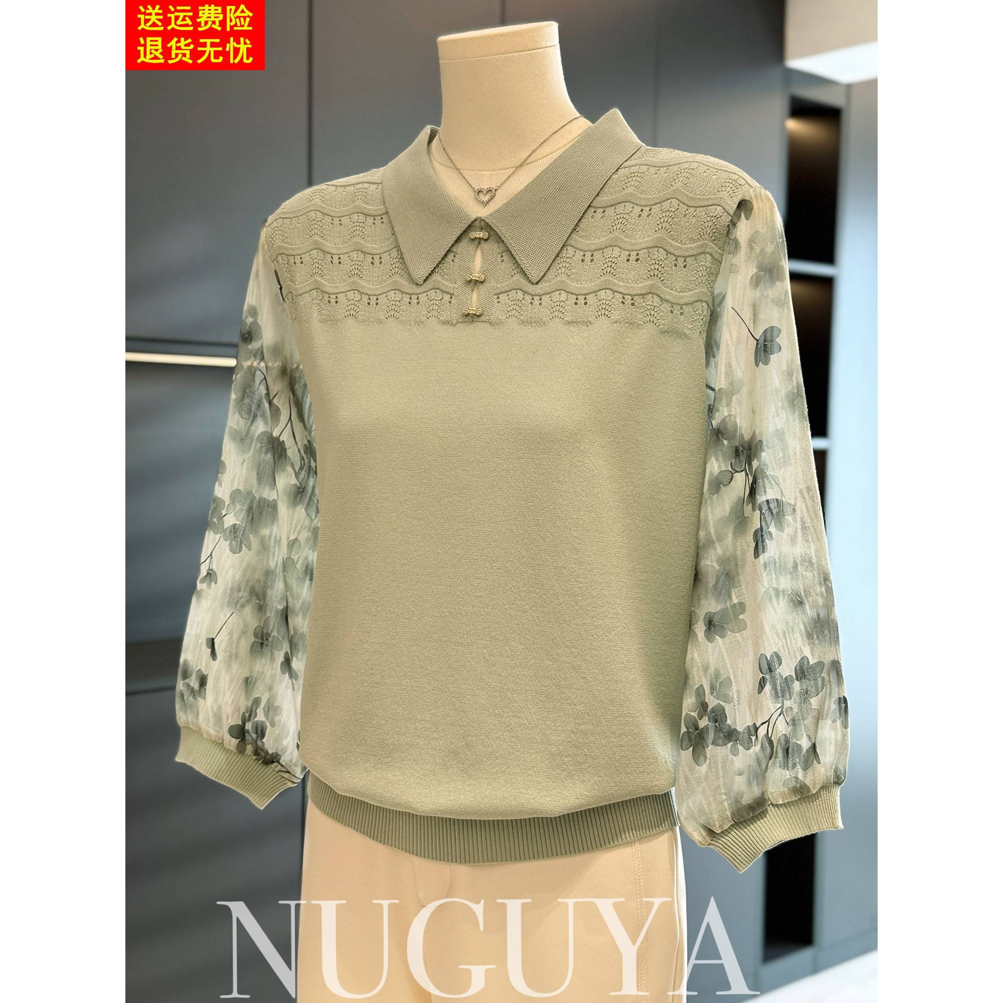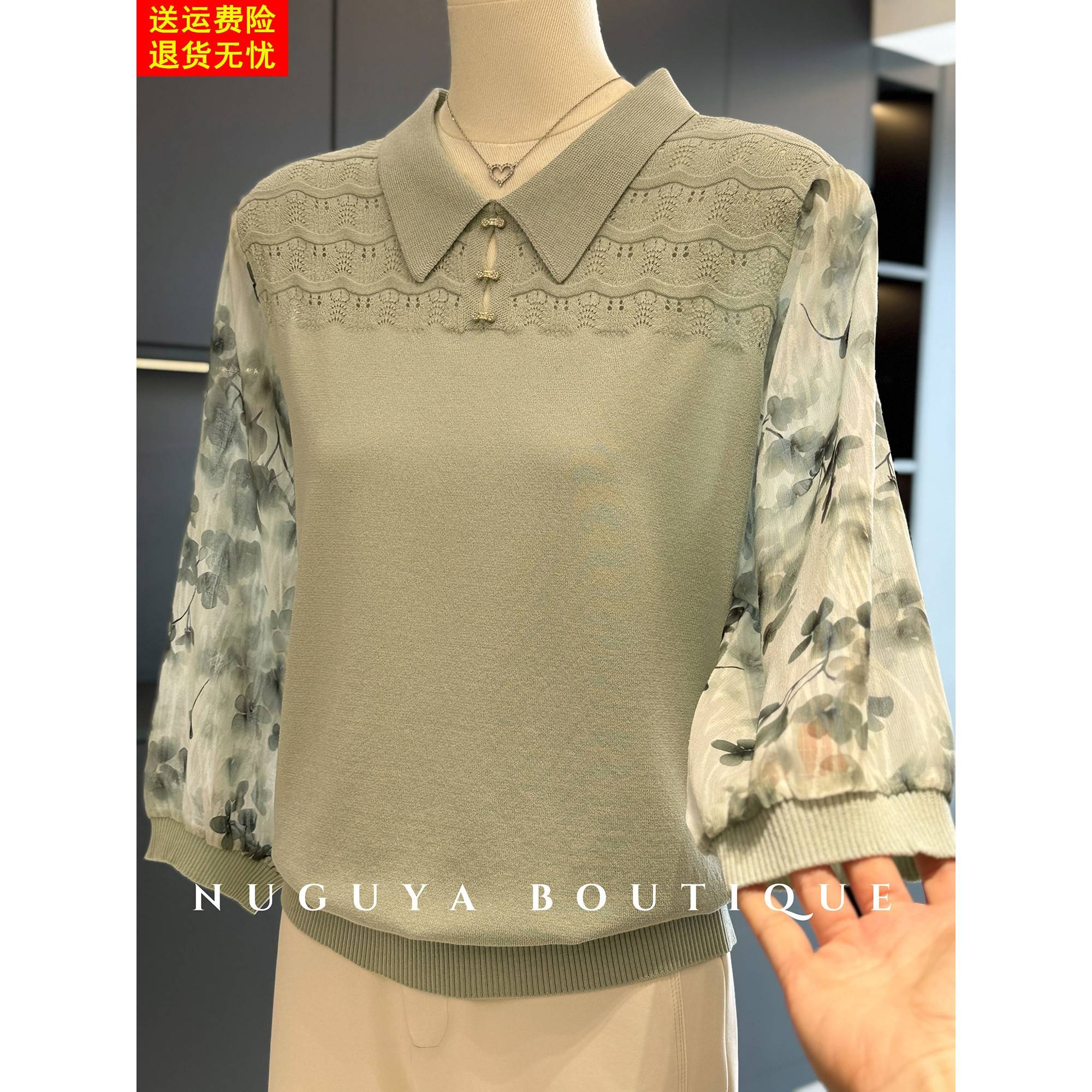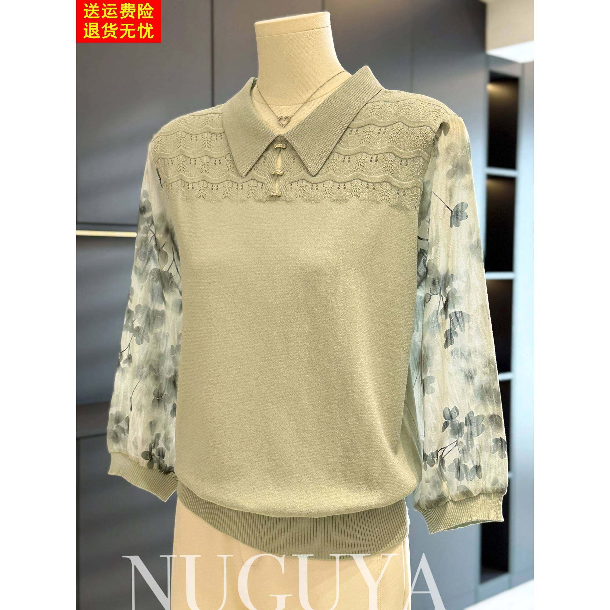 时尚减龄雪纺拼接针织衫女妈妈装秋装新款上衣气质百搭中老年小衫