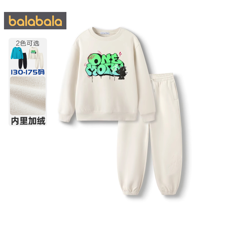 巴拉巴拉儿童加绒运动套装男童女童卫衣裤子冬季新款童装大童衣服