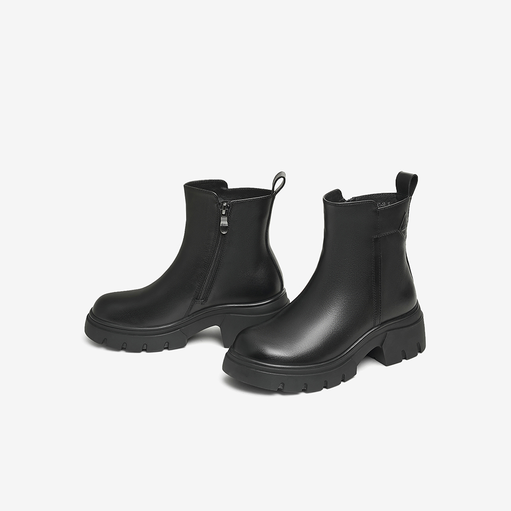百思图冬新款商场同款通勤加绒法式短靴牛皮粗跟女靴A5832DD4