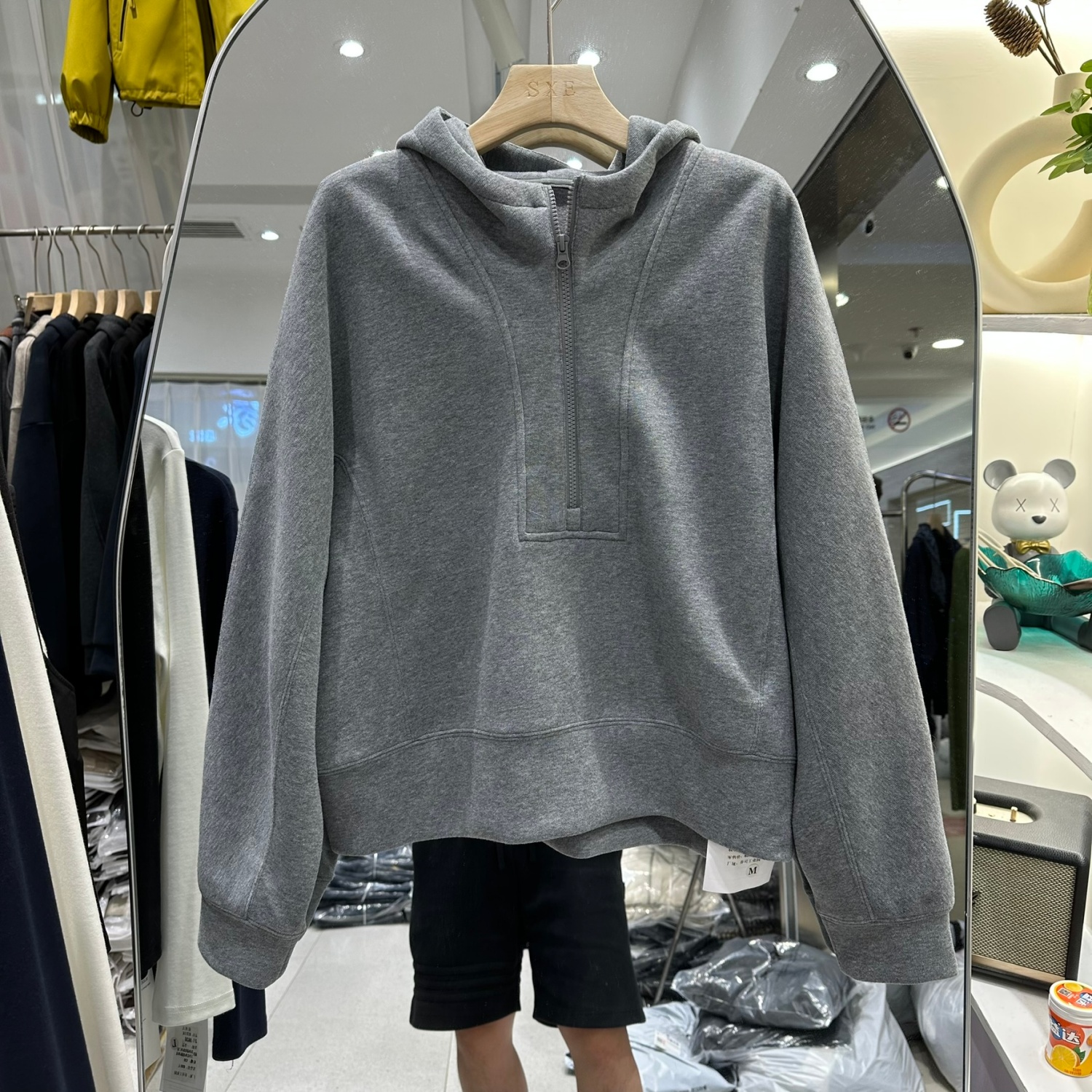 8658欧洲站2025秋新款时尚连帽半拉链宽松休闲百搭长袖卫衣外套女