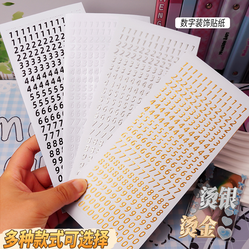 网红爆款烫金烫银数字贴纸女孩diy装饰手账咕卡盘小贴画蝴蝶字母