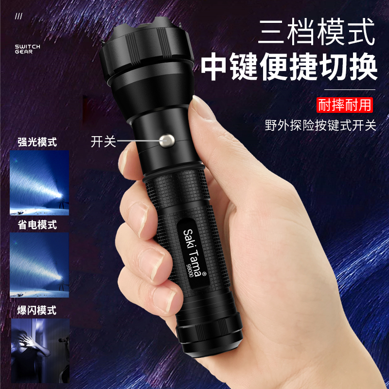 特种兵LED强光手电筒超亮远射可充电多功能巡逻宿舍户外应急照明