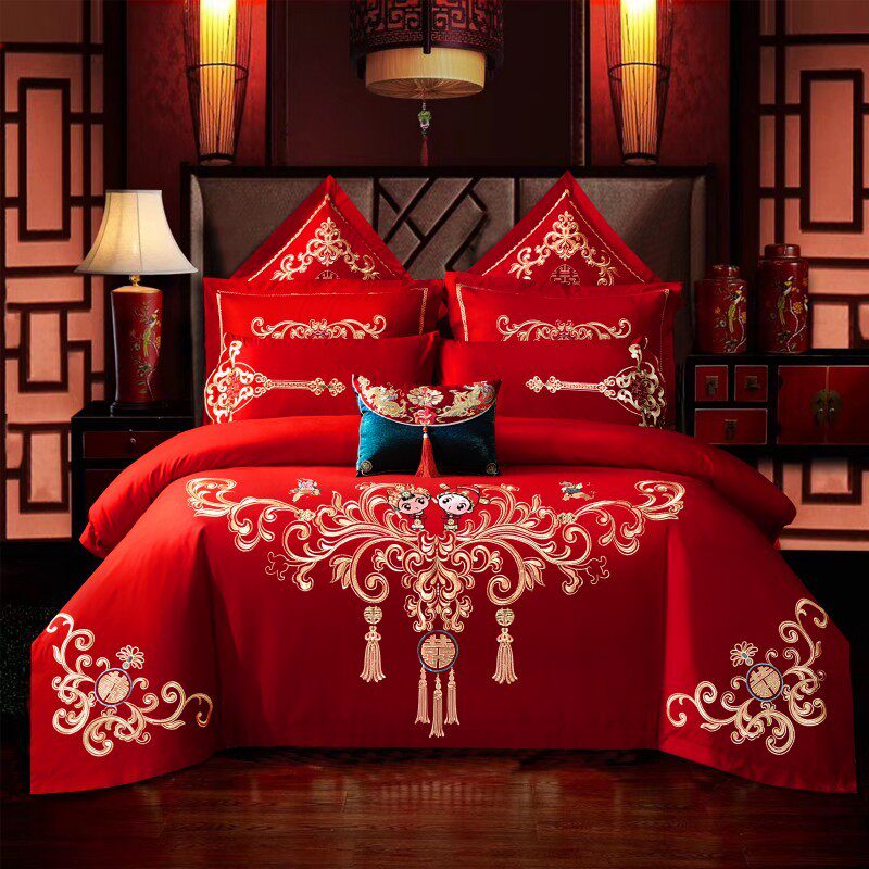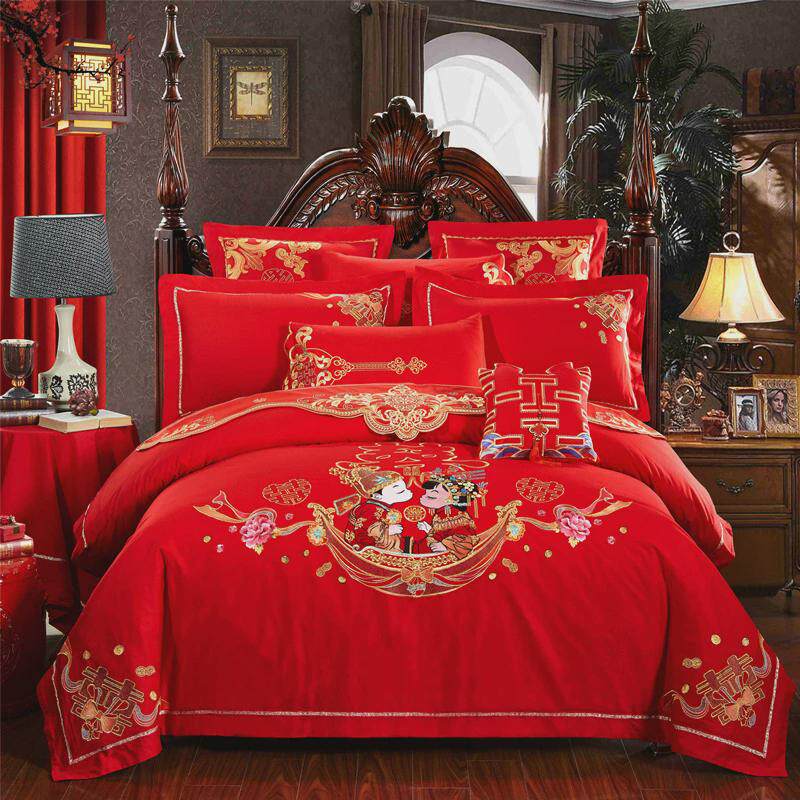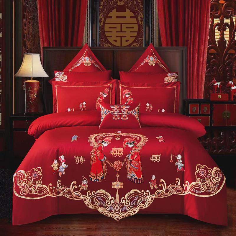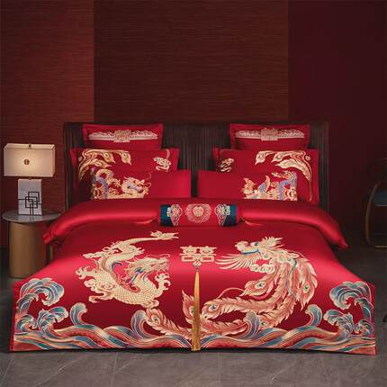 eq4f刺绣结婚四件套龙凤婚庆大红喜庆被套床单婚房嫁床上用品六十