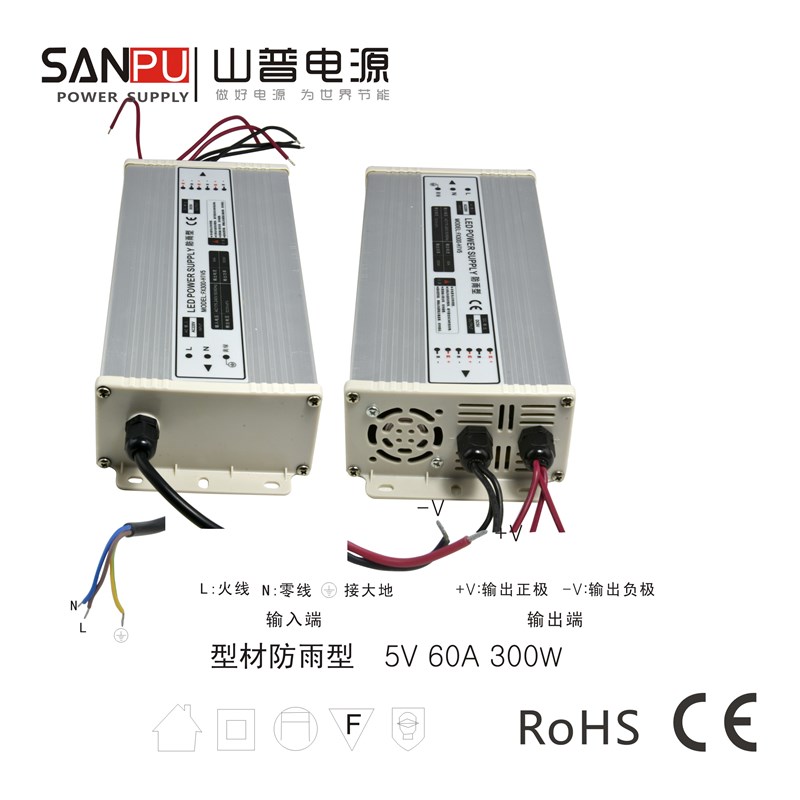220v转5V 60A防雨开关电源300W门头显示屏5伏40安山普led变压器