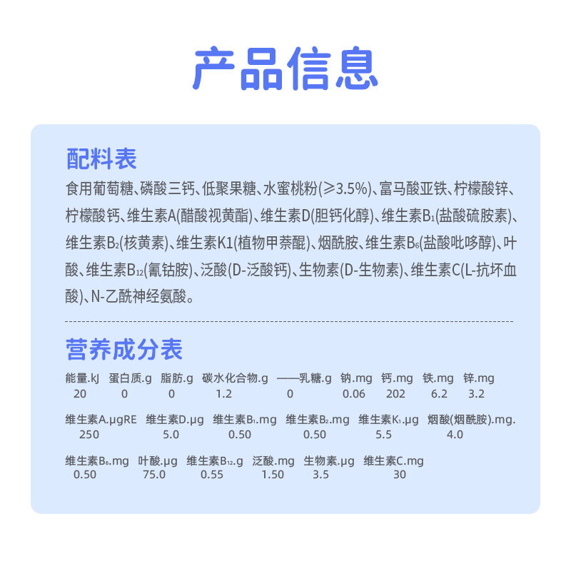 一家人钙铁锌辅食营养包水蜜桃味不含蛋白质乳糖敏宝婴幼儿童