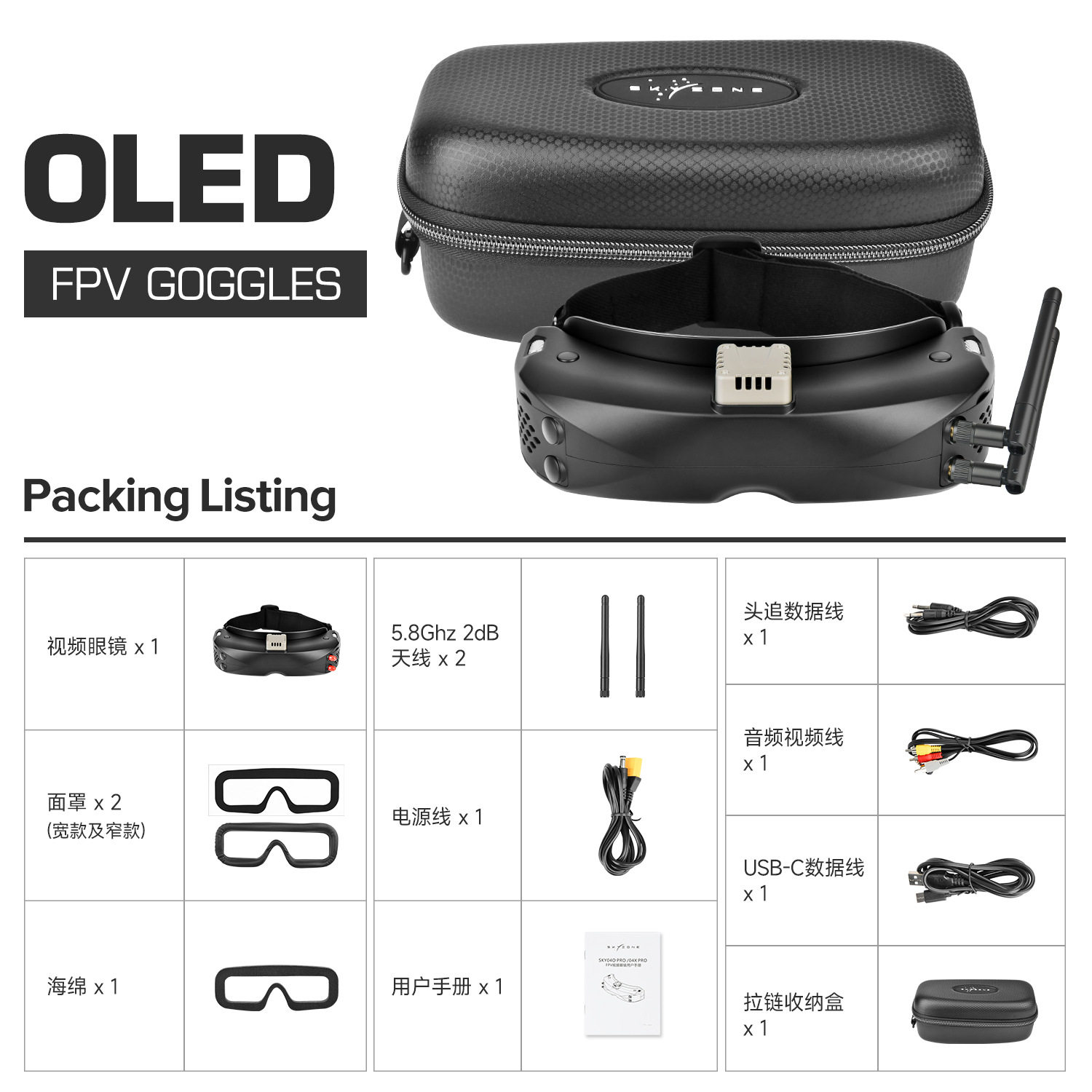 天空领域 Skyzone SKY04X VR-040-PRO DVR60 帧 FPV 图传眼镜