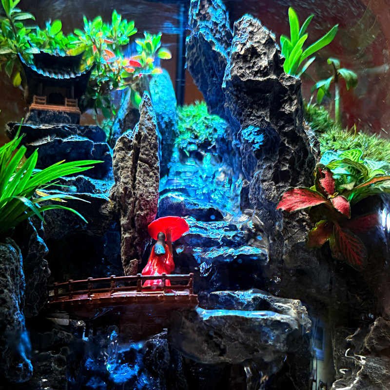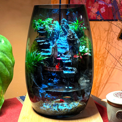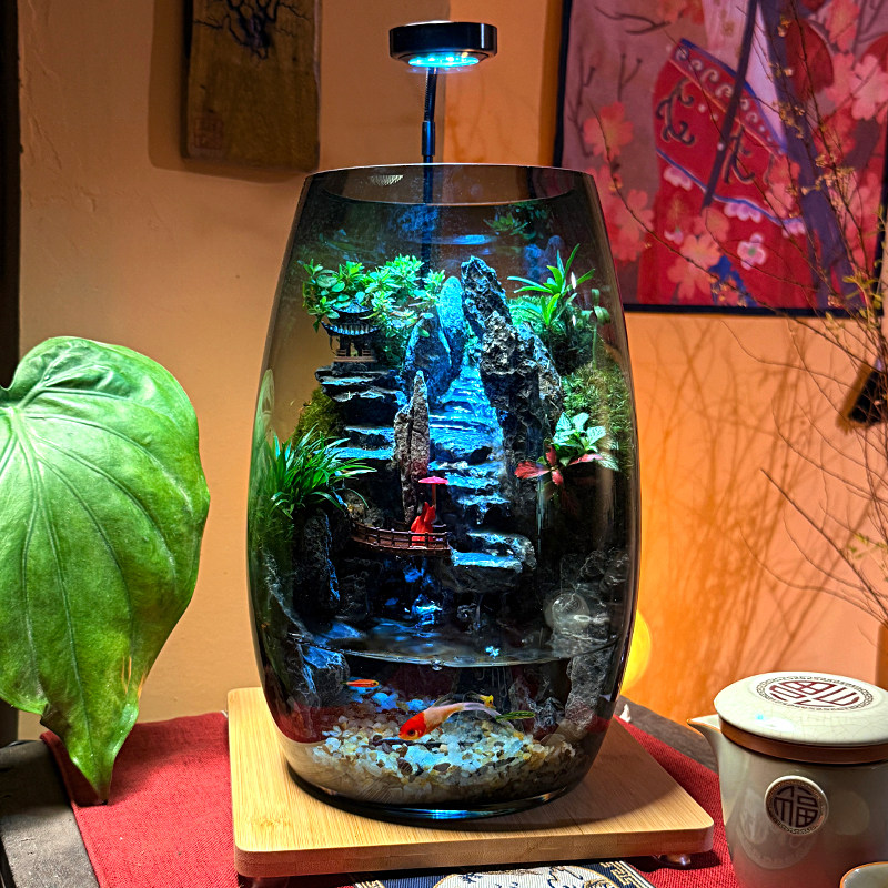 苔藓微景观云霞山流水款鱼缸造景生态瓶桌面水族箱室内装饰摆件