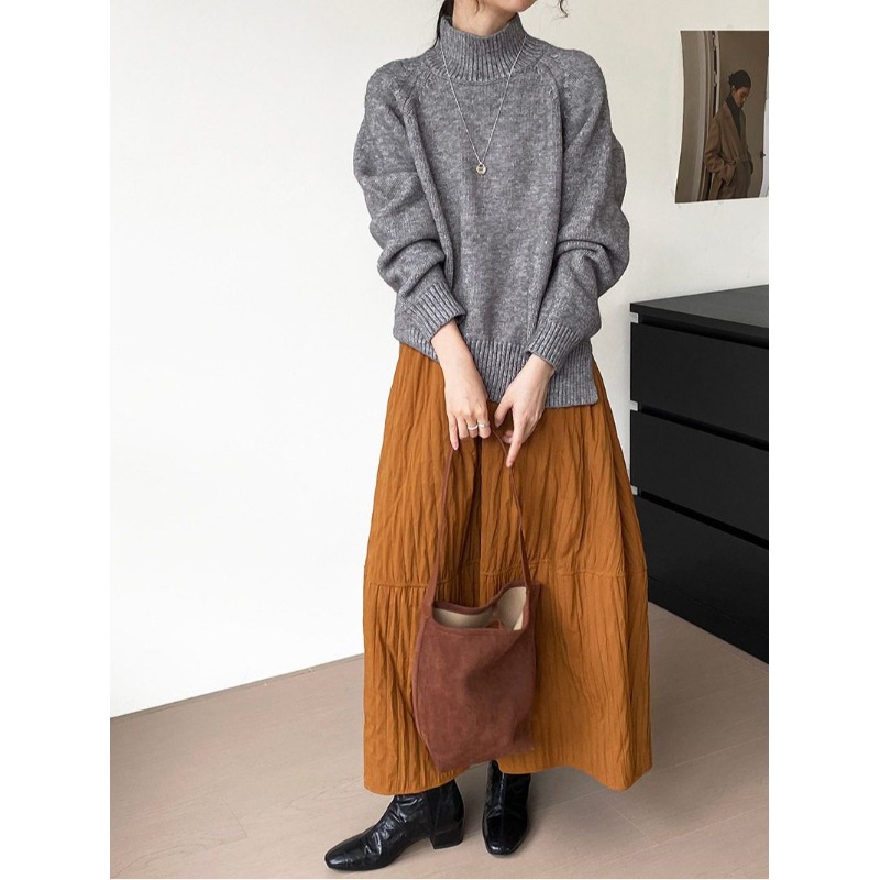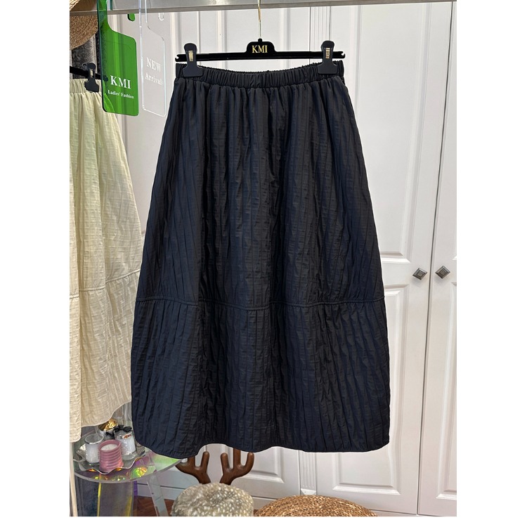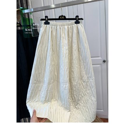 文艺风松紧腰花苞半身裙女秋冬简约宽松遮胯保暖百搭休闲灯笼裙潮
