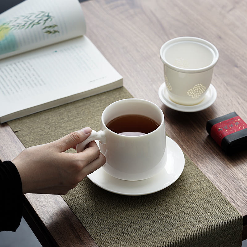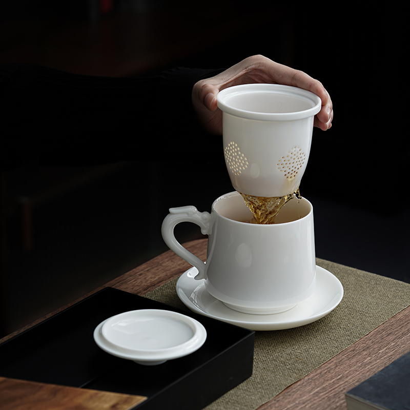 德化羊脂玉陶瓷茶杯套装办公室带盖水杯白瓷会议杯子家用礼品定制