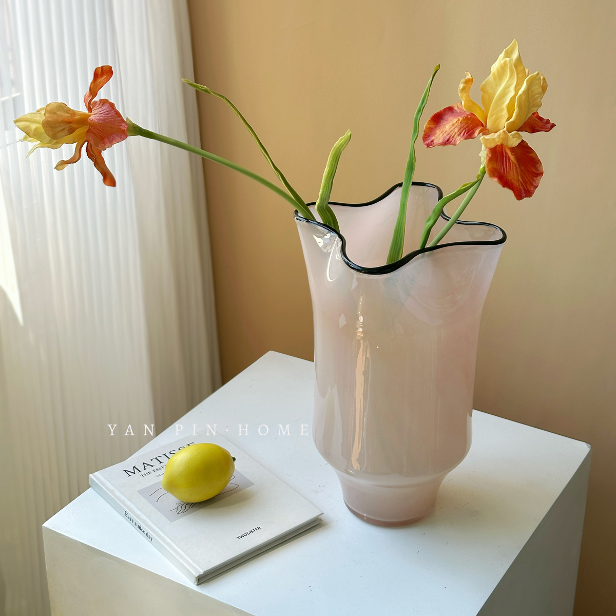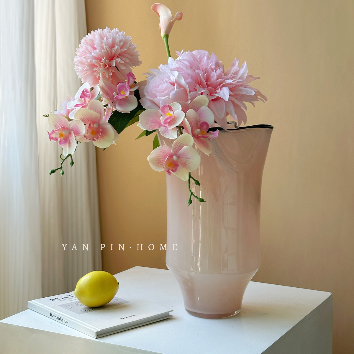 粉色琉璃花瓶高级感现代简约风