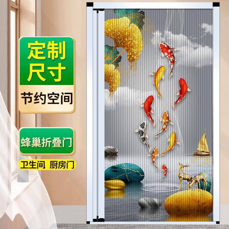 免打孔折叠隐形门印花推拉门简易门卧室开放式厨房隔断门蜂巢浴室
