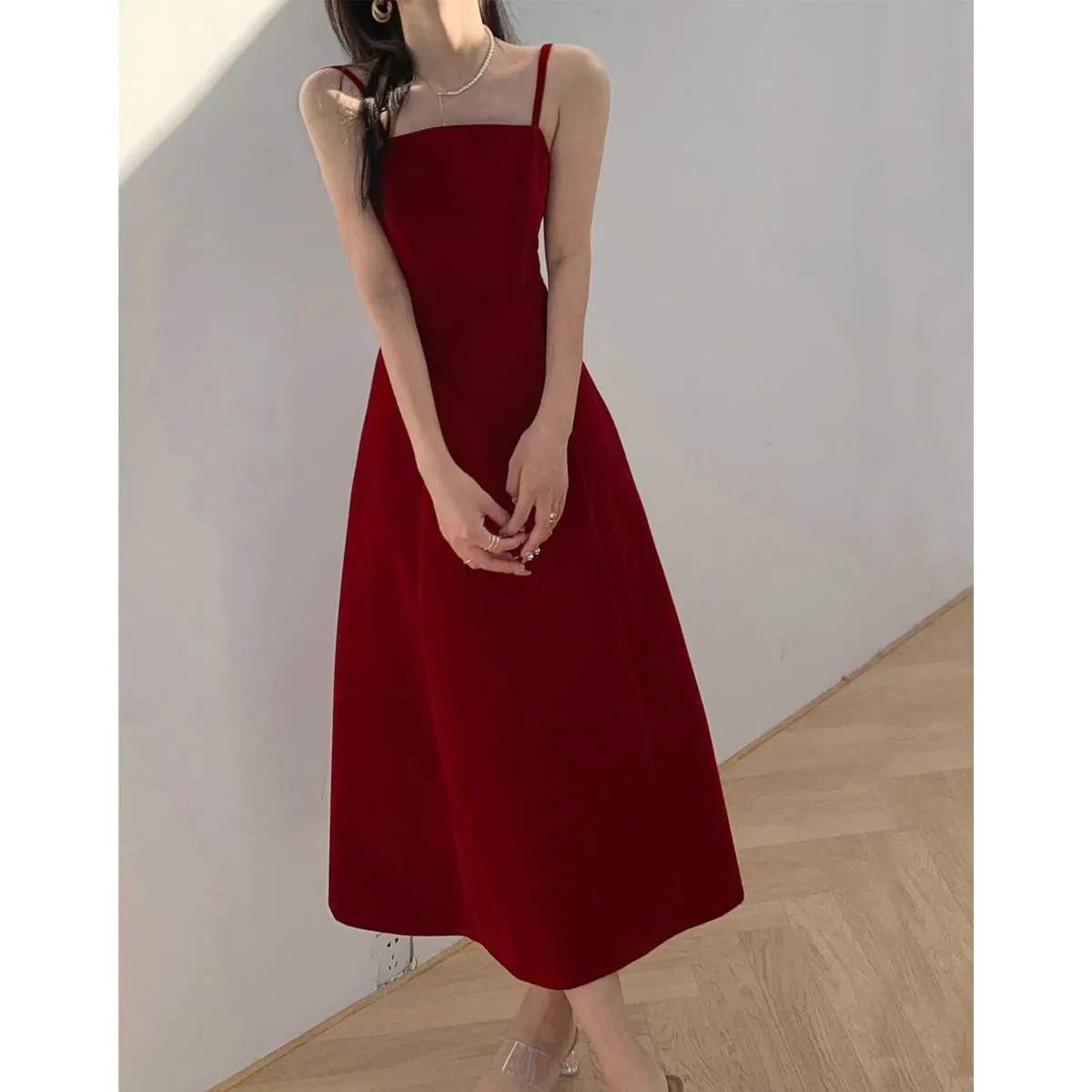 2024新款韩系纯色收腰显瘦吊带连