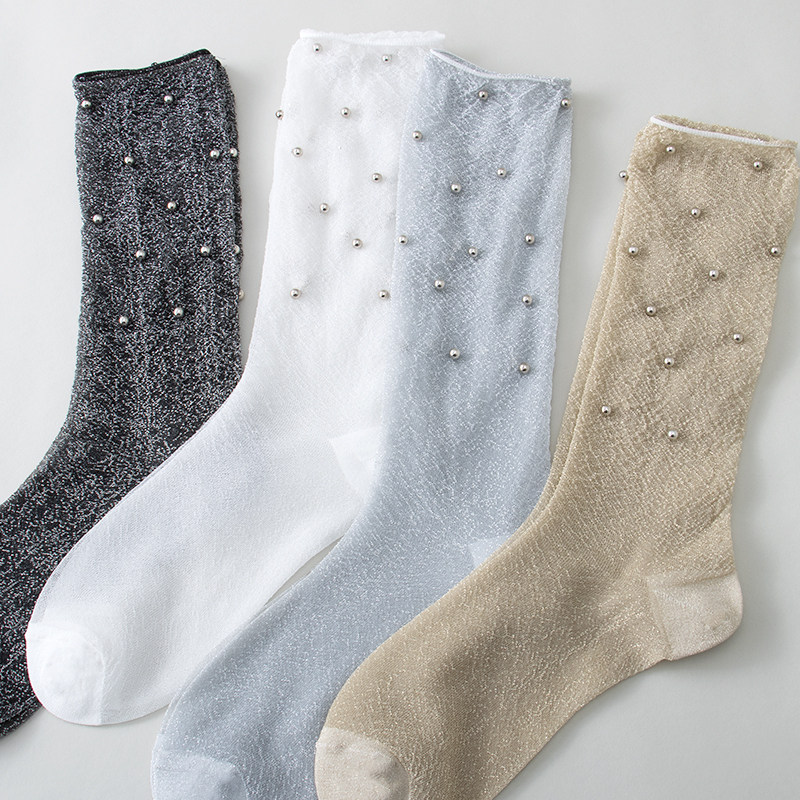 堆堆袜夏季薄款袜子女长筒超薄韩版珍珠袜子ins潮学院风水晶丝袜