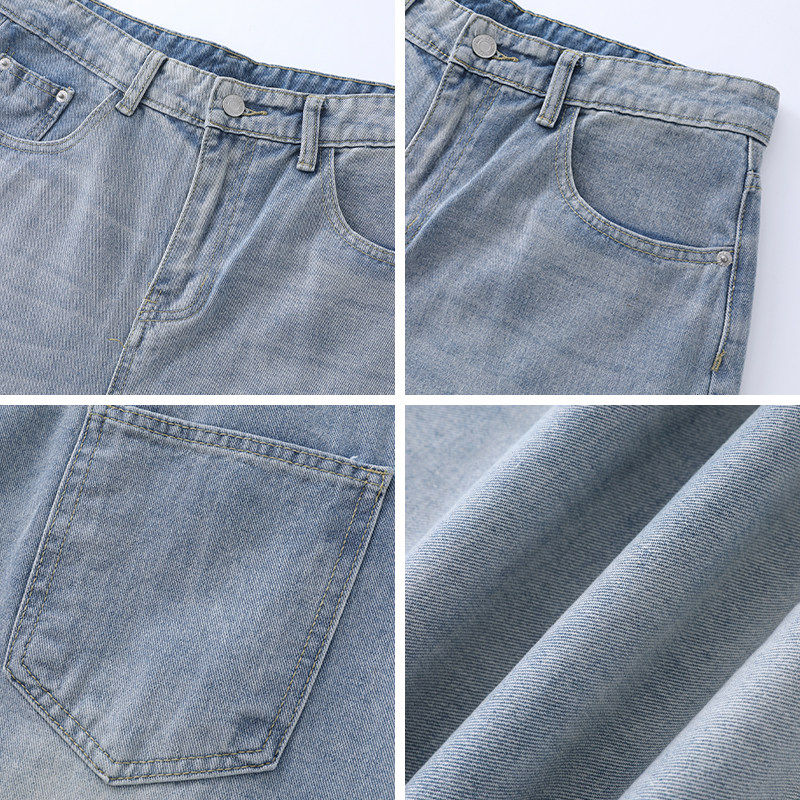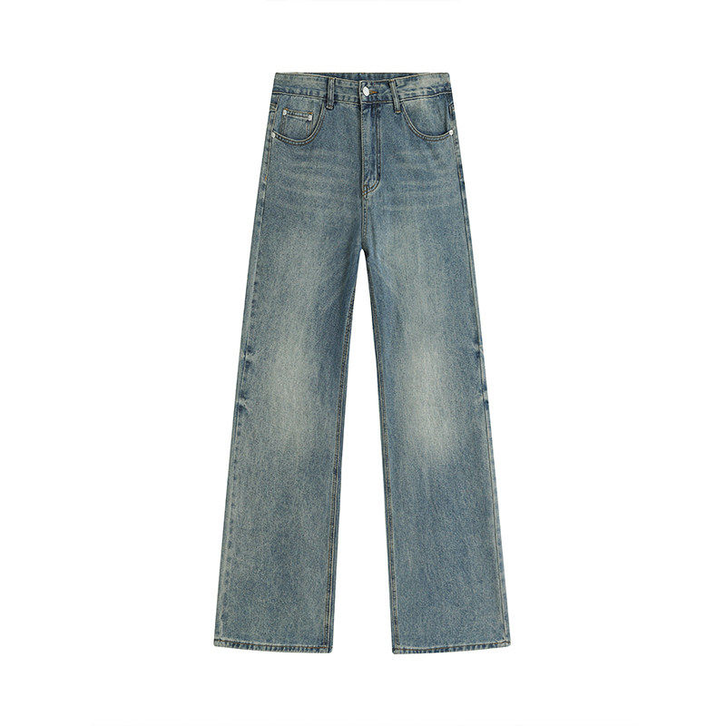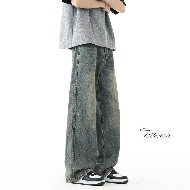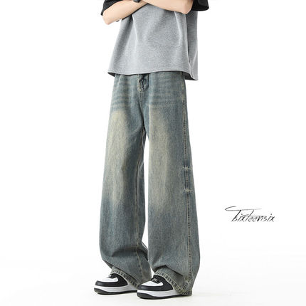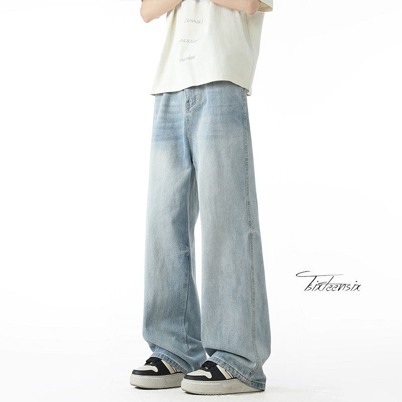 美式浅蓝色直筒牛仔裤男款春秋高街宽松复古cleanfit裤子男生长裤