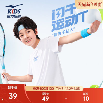 鸿星尔克童装男童短袖冬季儿童速干衣T恤运动百搭中大童舒服半袖
