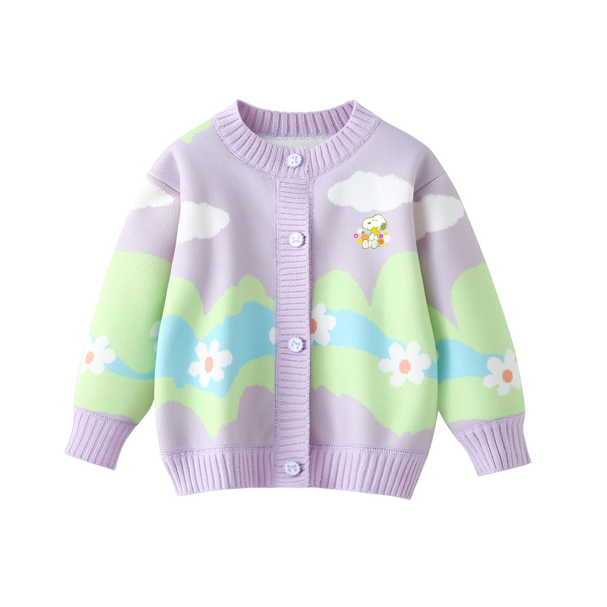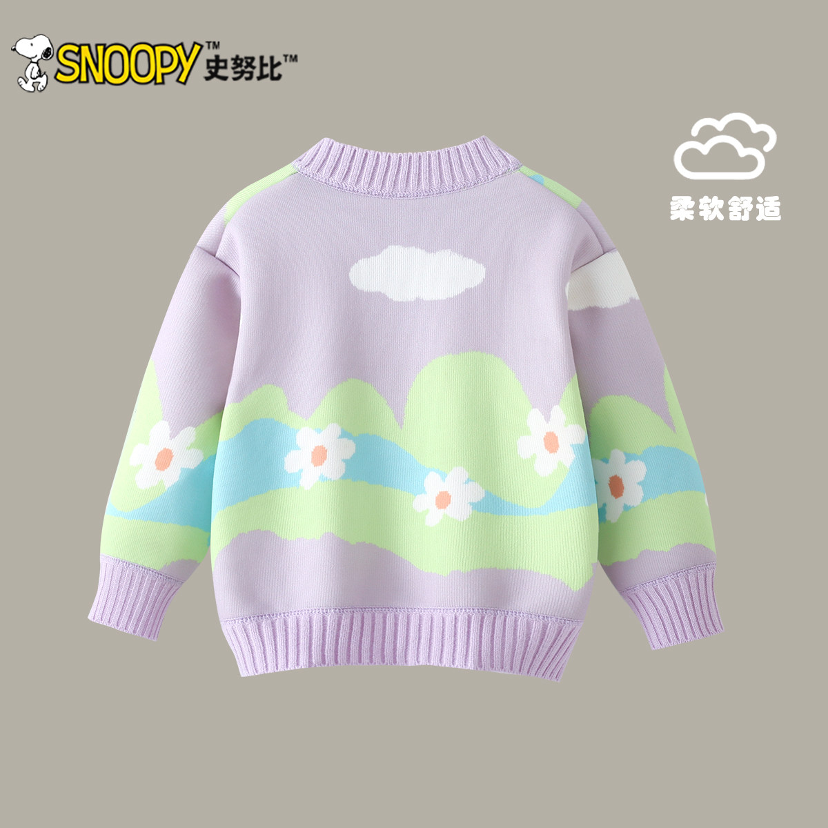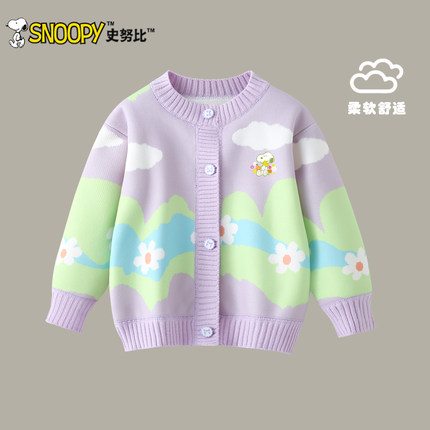 史努比女童针织开衫秋冬装2025新款儿童洋气外套女孩卡通加绒毛衣