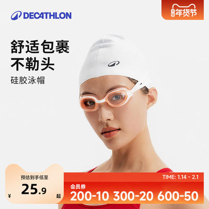 迪卡侬女款长发加大硅胶不勒头高颜值防水大头围专业训练泳帽IVA4