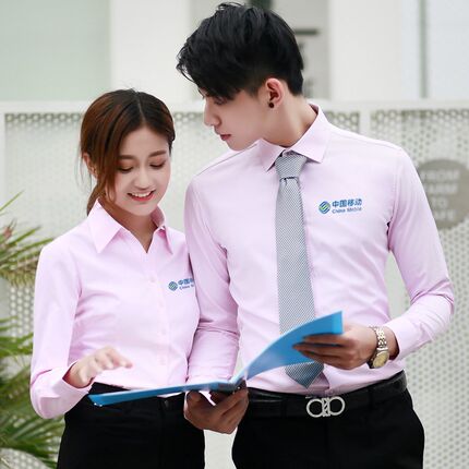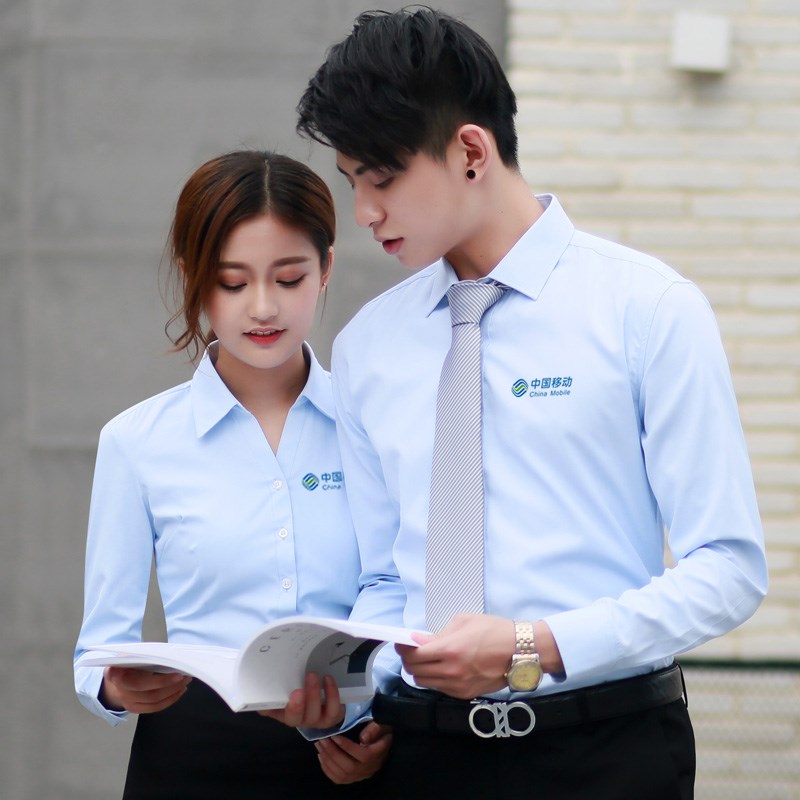 春夏款中国移动公司工作服衬衫定制男女长短袖衬衣绣名字职业工装