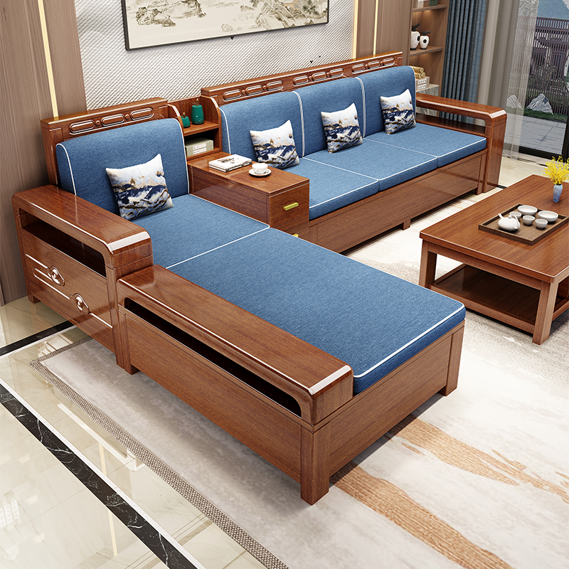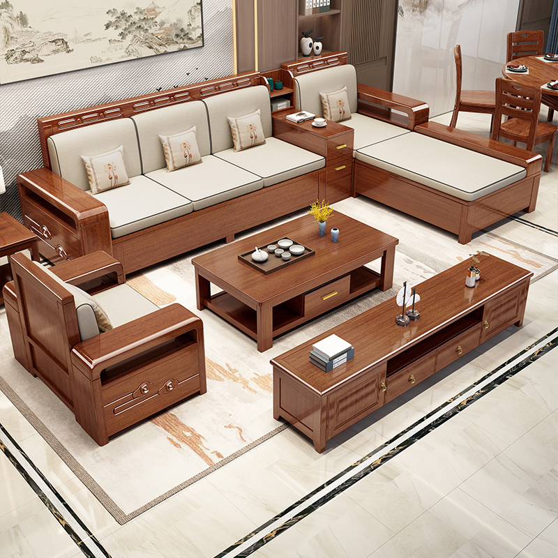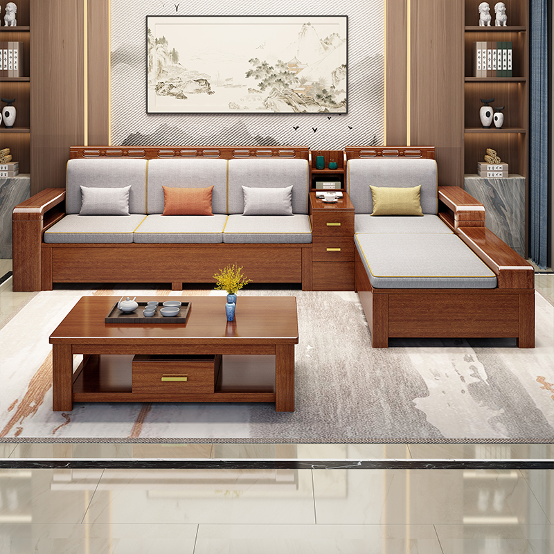 胡桃木全实木沙发组合新中式冬夏两用三人位客厅高箱储物木质家具