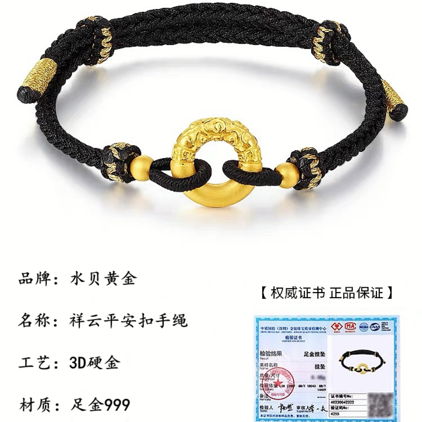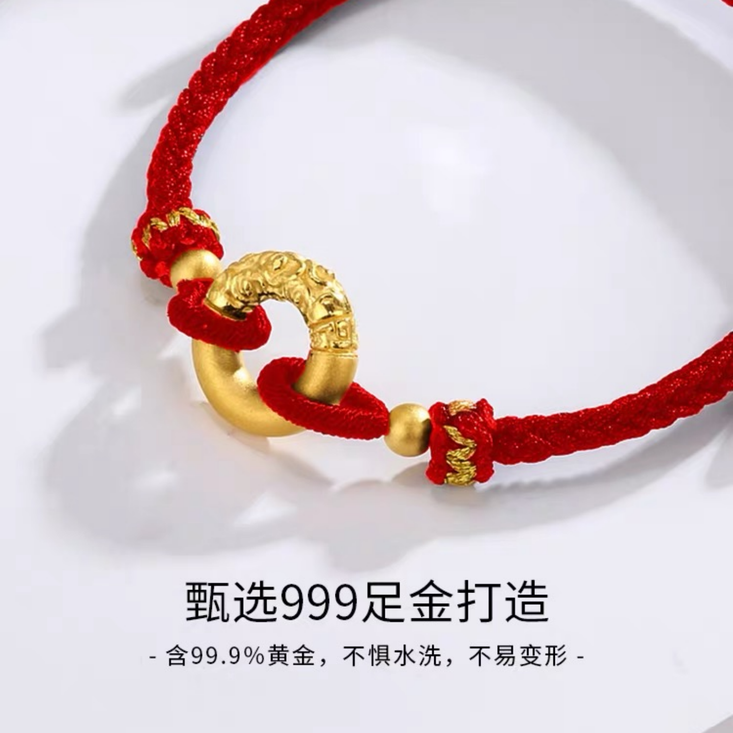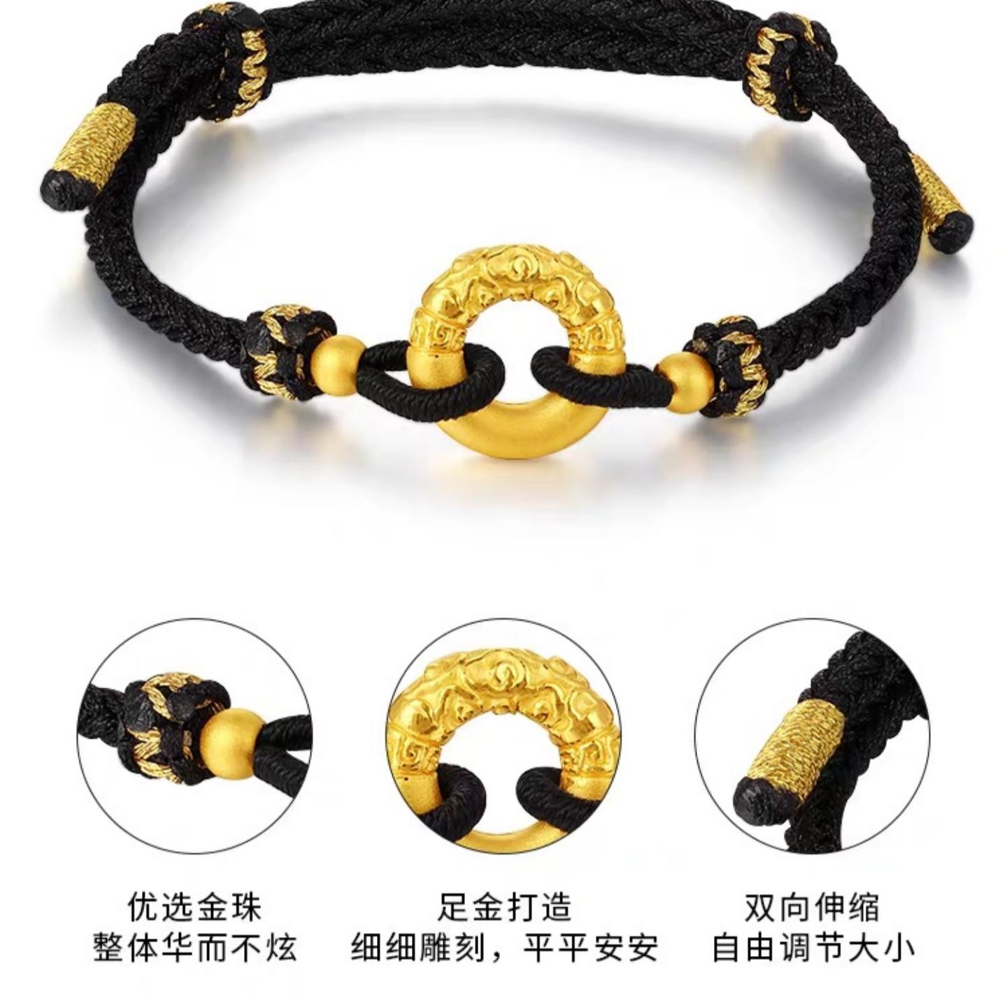 水贝黄金如意金箍圈平安扣手链999足金转运珠手绳情侣款七夕礼物