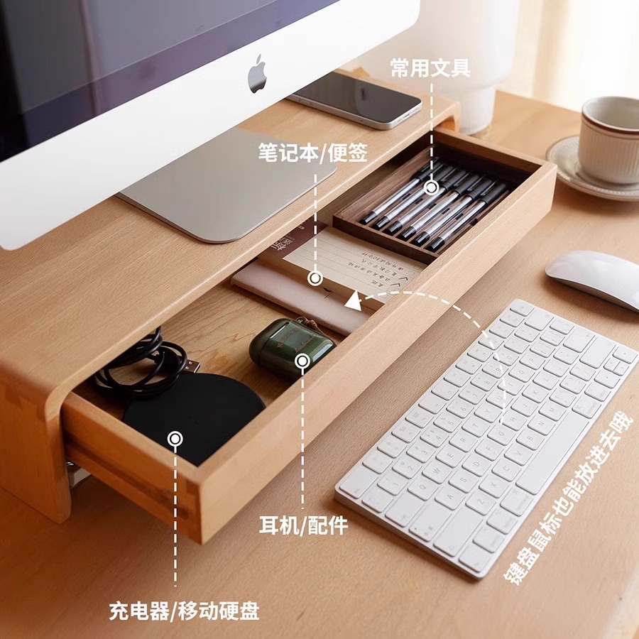 实木台式电脑增高架办公室显示器垫高底座托架桌面键盘收纳置物架