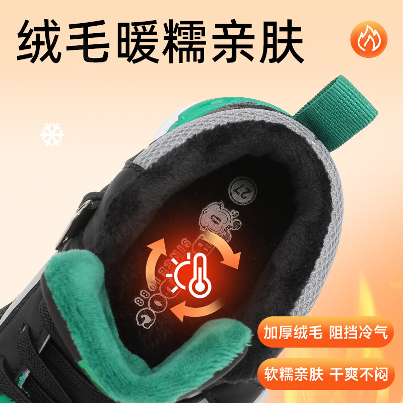 巴布豆童鞋男童鞋秋冬款2025新款加绒板鞋男宝二棉鞋女儿童运动鞋