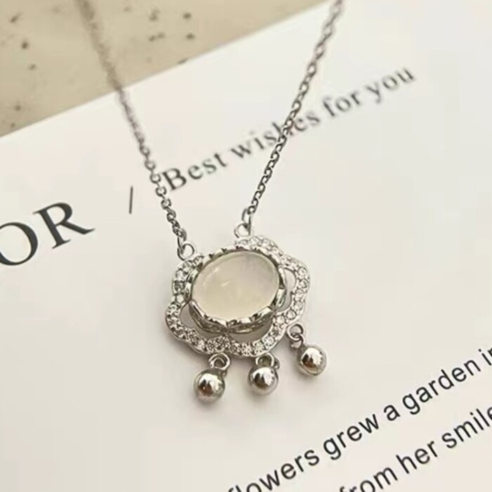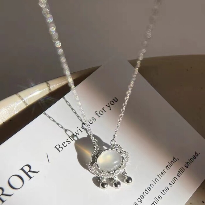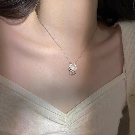 925纯银项链女锁骨链长命锁流苏吉祥如意吊坠白玉髓配饰