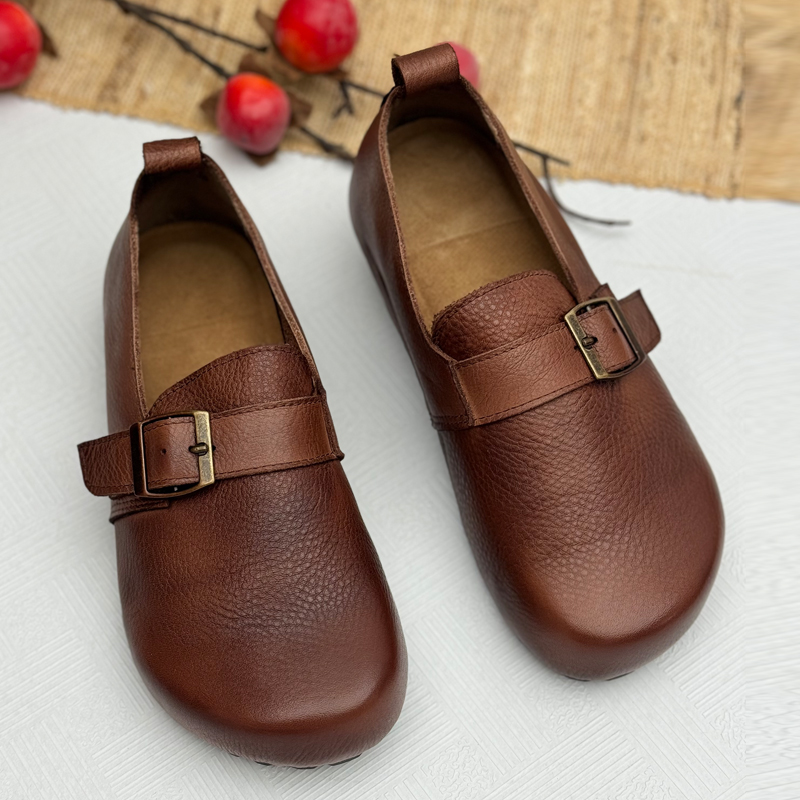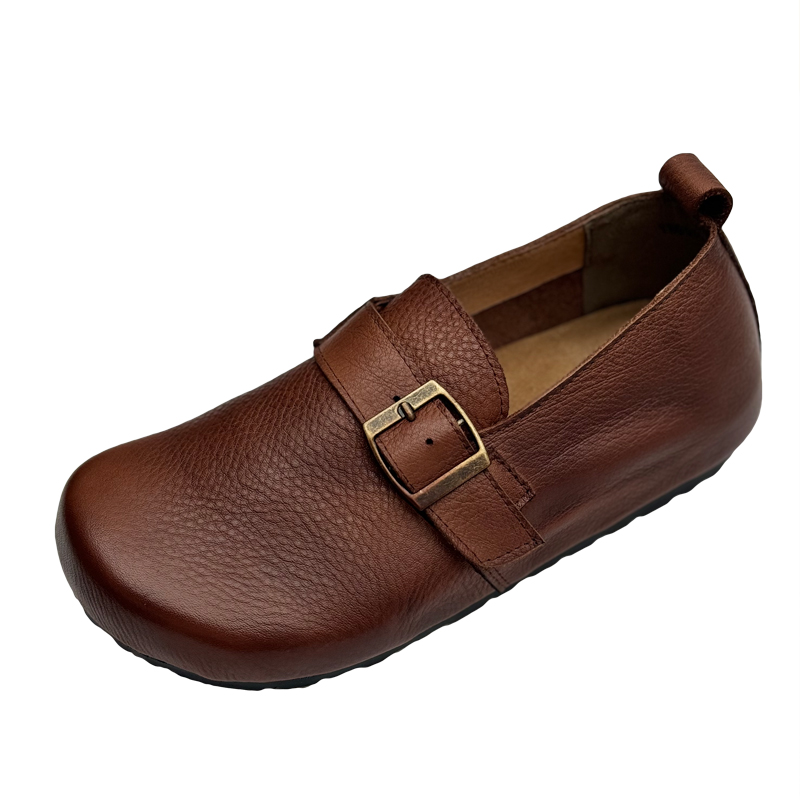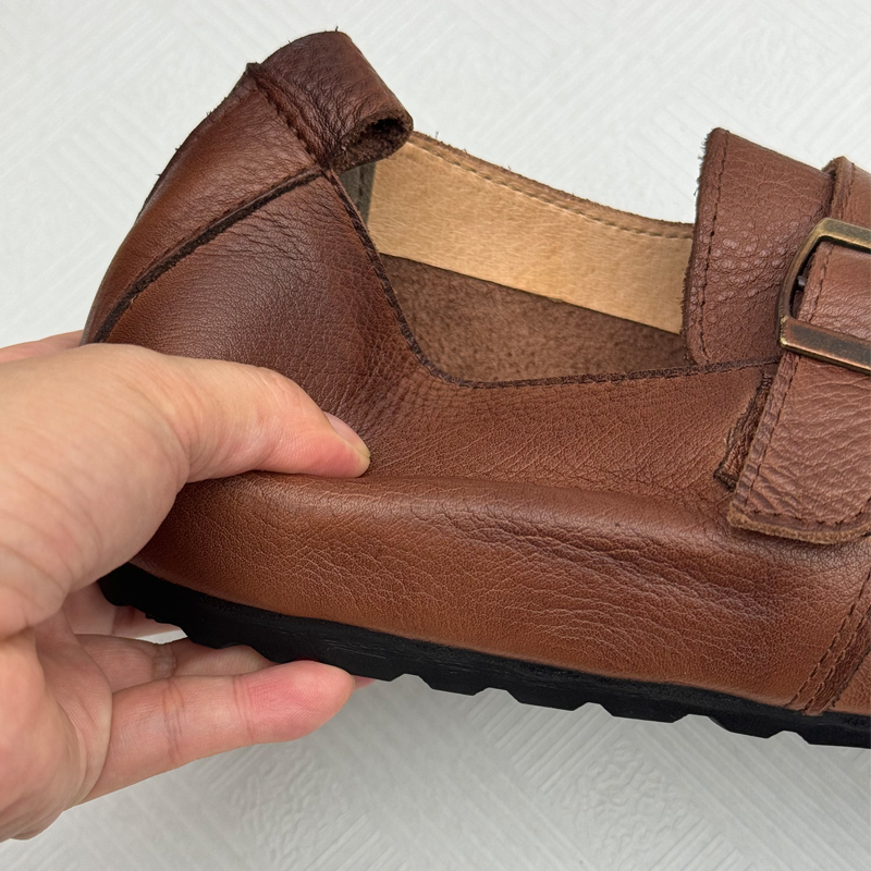 手工真皮复古乐福鞋女内增高一脚蹬单鞋平底豆豆鞋中老年休闲鞋子