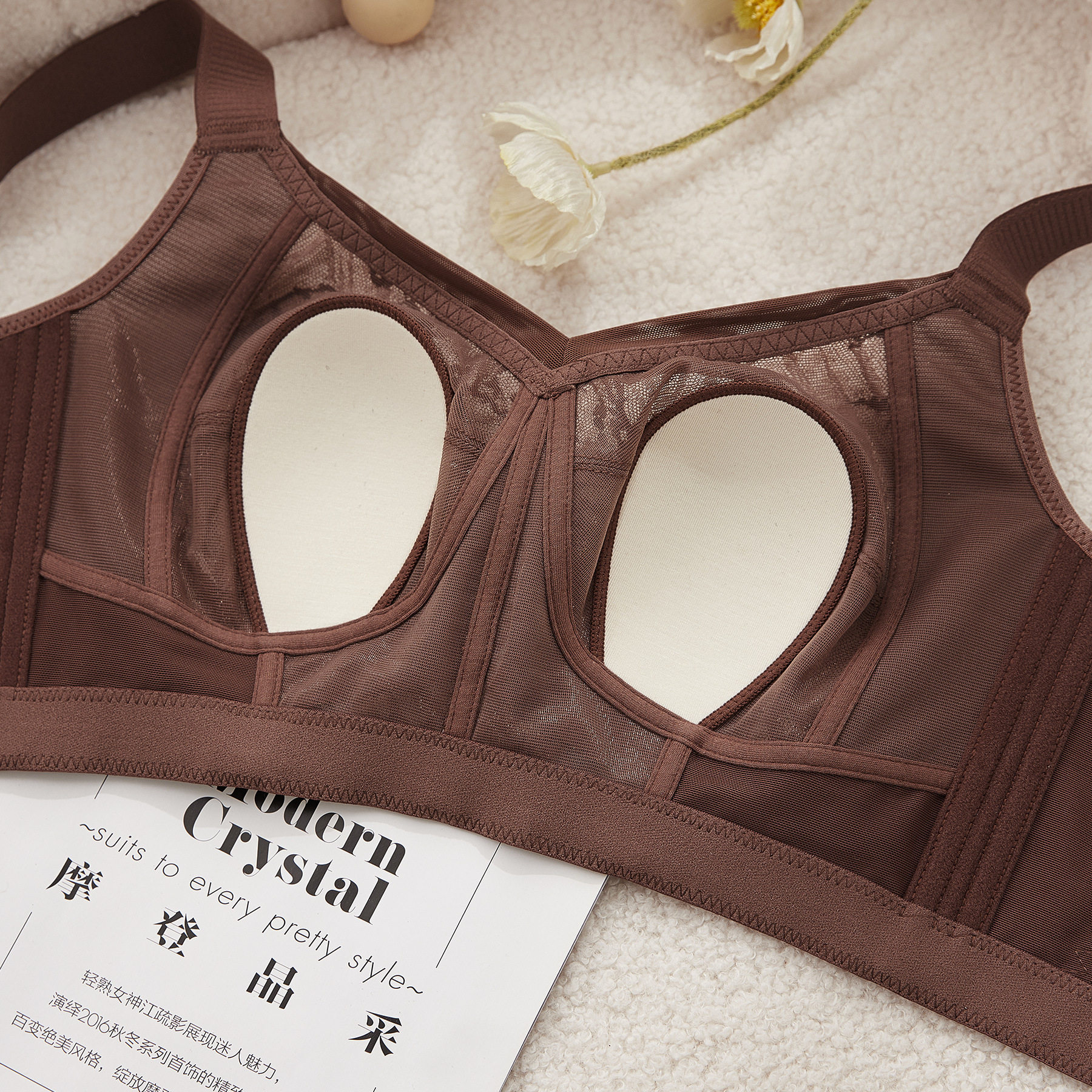 大胸显小全罩杯上托收副乳内衣女兔耳朵防凸点超薄调整型文胸