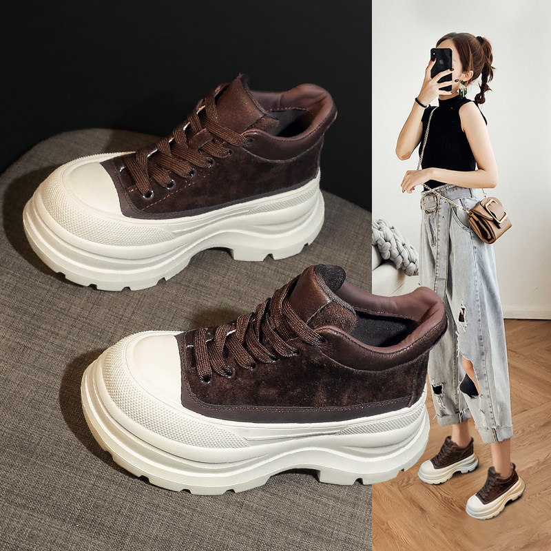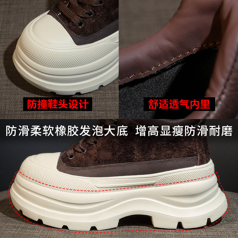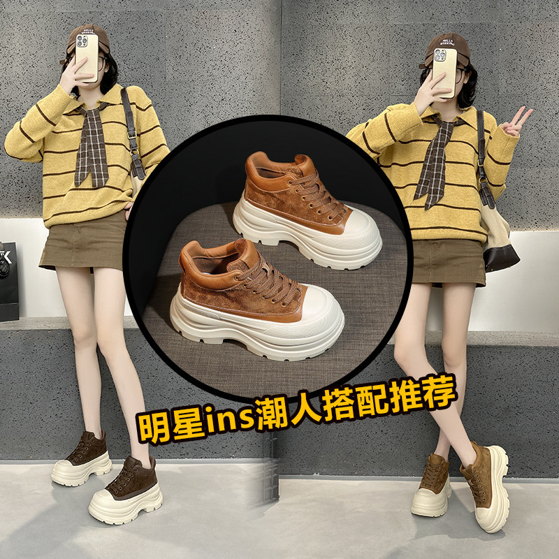 高帮鞋女增高春季新款2026年超火真皮百搭百搭休闲厚底马丁靴爆款